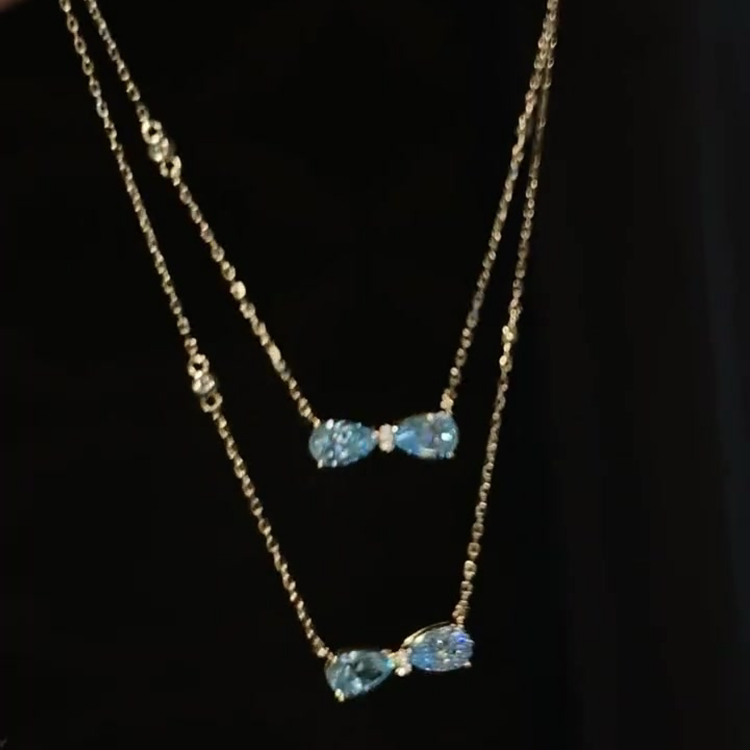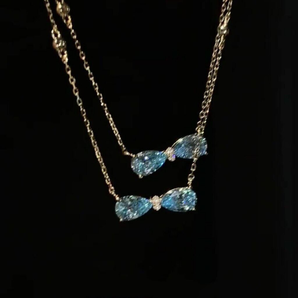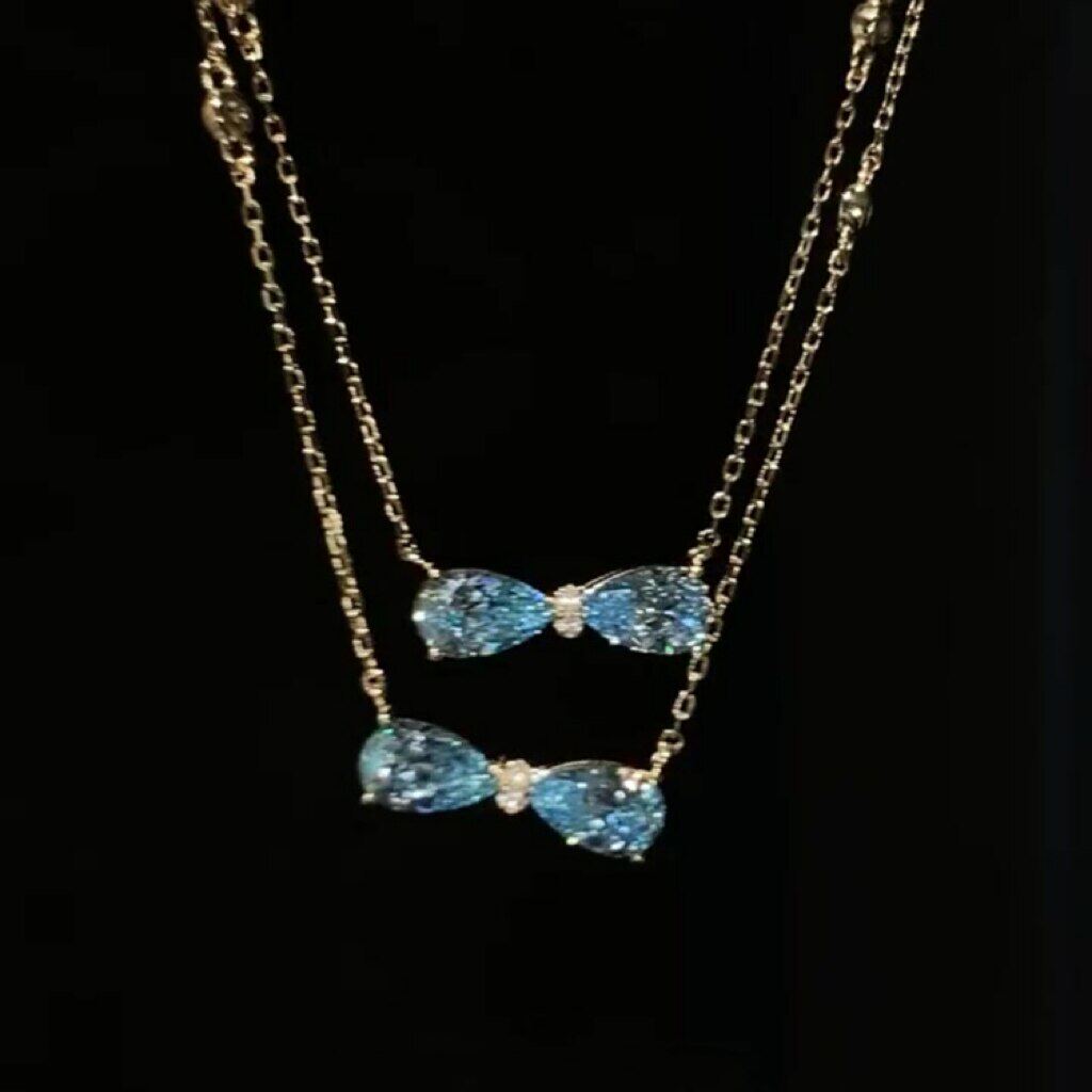 赛里木湖蓝色蝴蝶结项链女2026新款高级感轻奢小众精致气质锁骨链