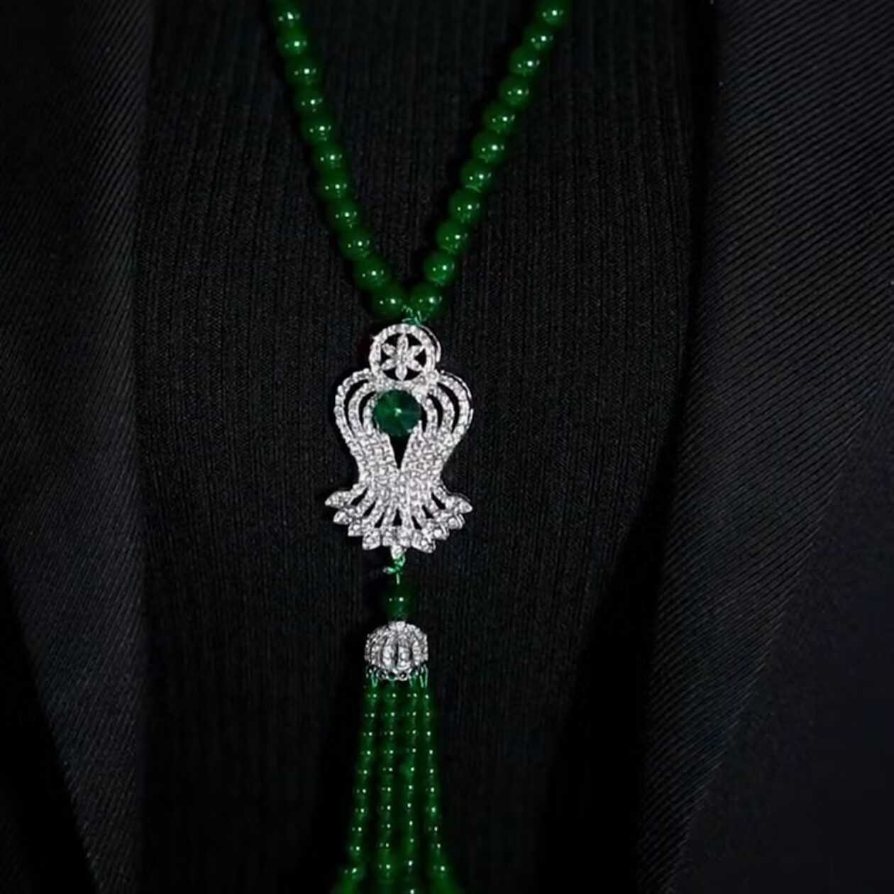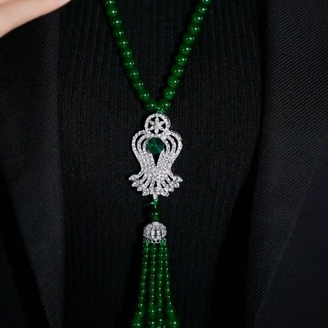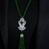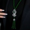 复古绿色串珠满钻花瓶流苏毛衣链网红爆款长款时尚配饰挂件毛衣链
