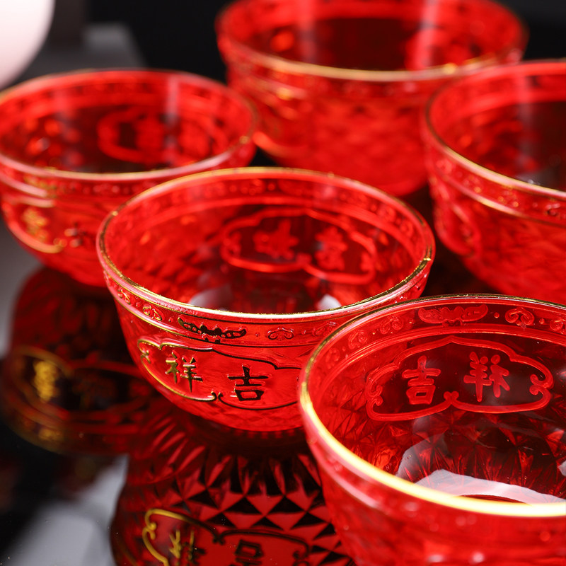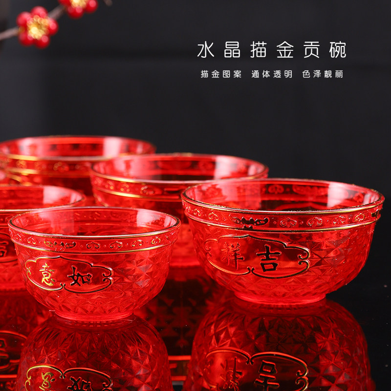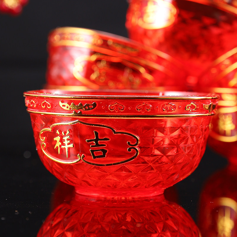 敬神碗红色塑料佛前供碗小碗佛堂供佛贡品碗财神碗供斋碗汤圆碗