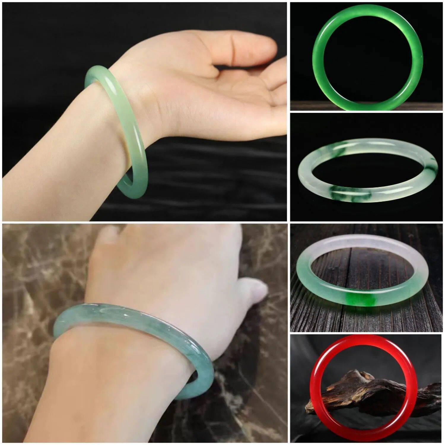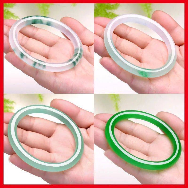 冰种翡翠色飘花手镯 8m圆条细条水沫玉绿色玉镯子女士美人镯