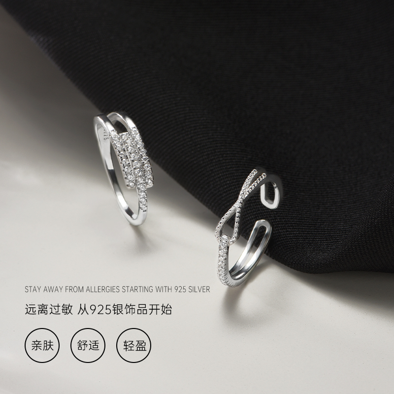 925纯银戒指女镶钻小众设计轻奢高级感冷淡风ins潮时尚可调节指环
