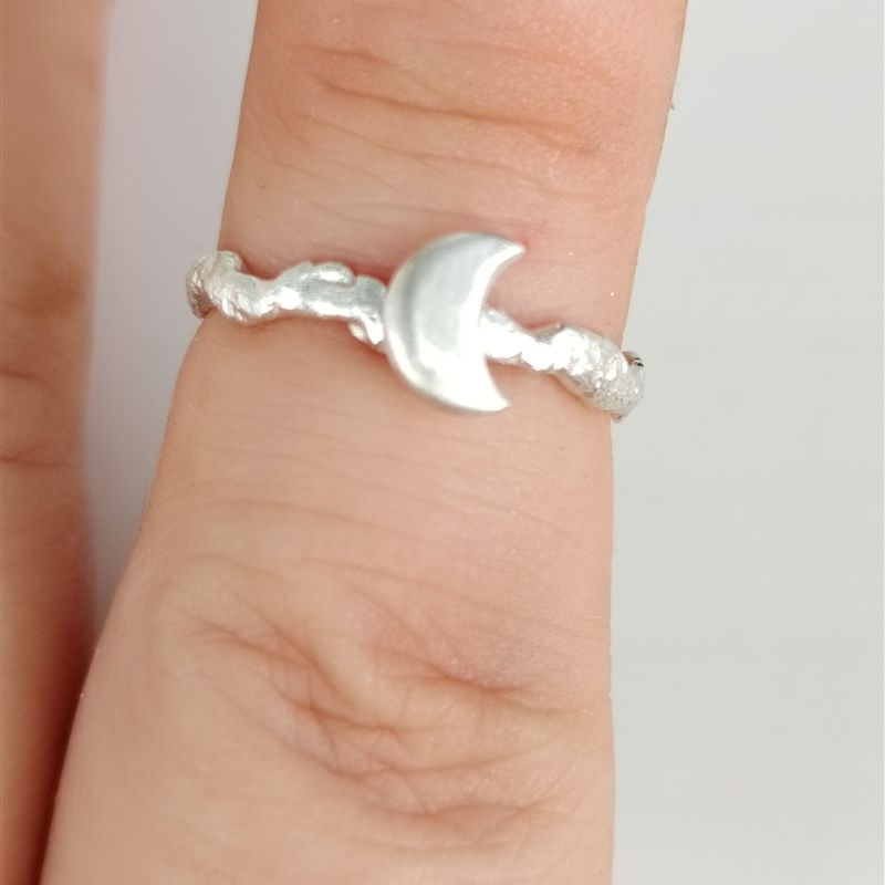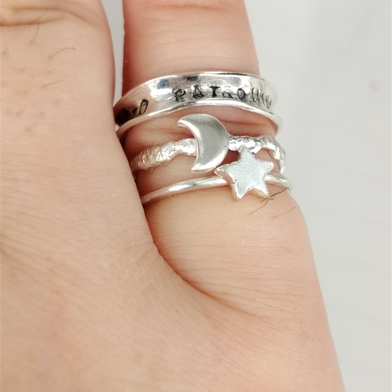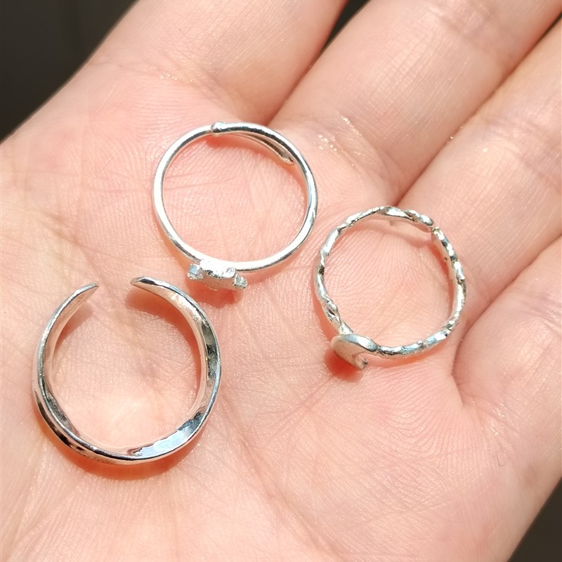 手工999e足银月亮星星太阳爱心不规则肌理纹开口戒指男女戒子定制