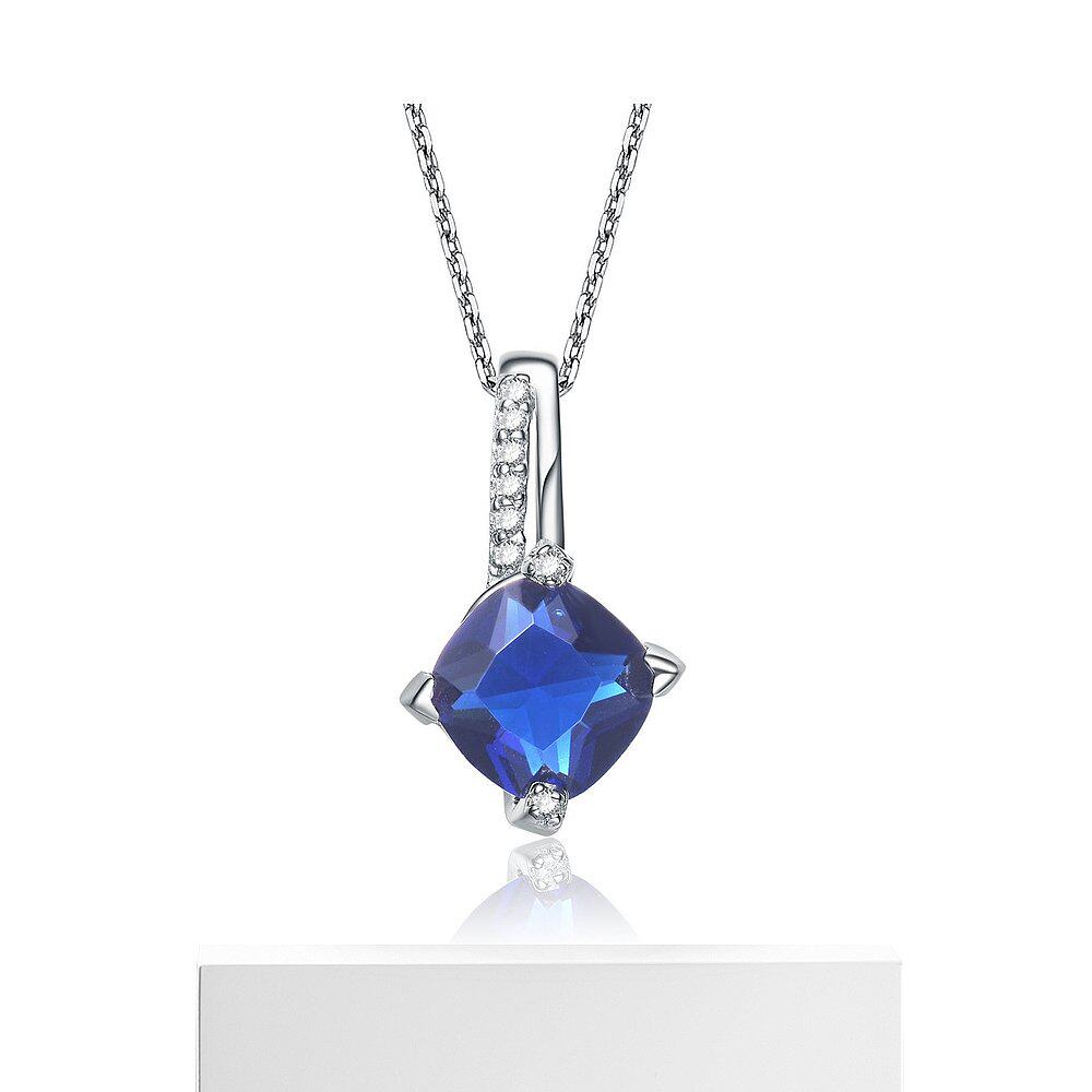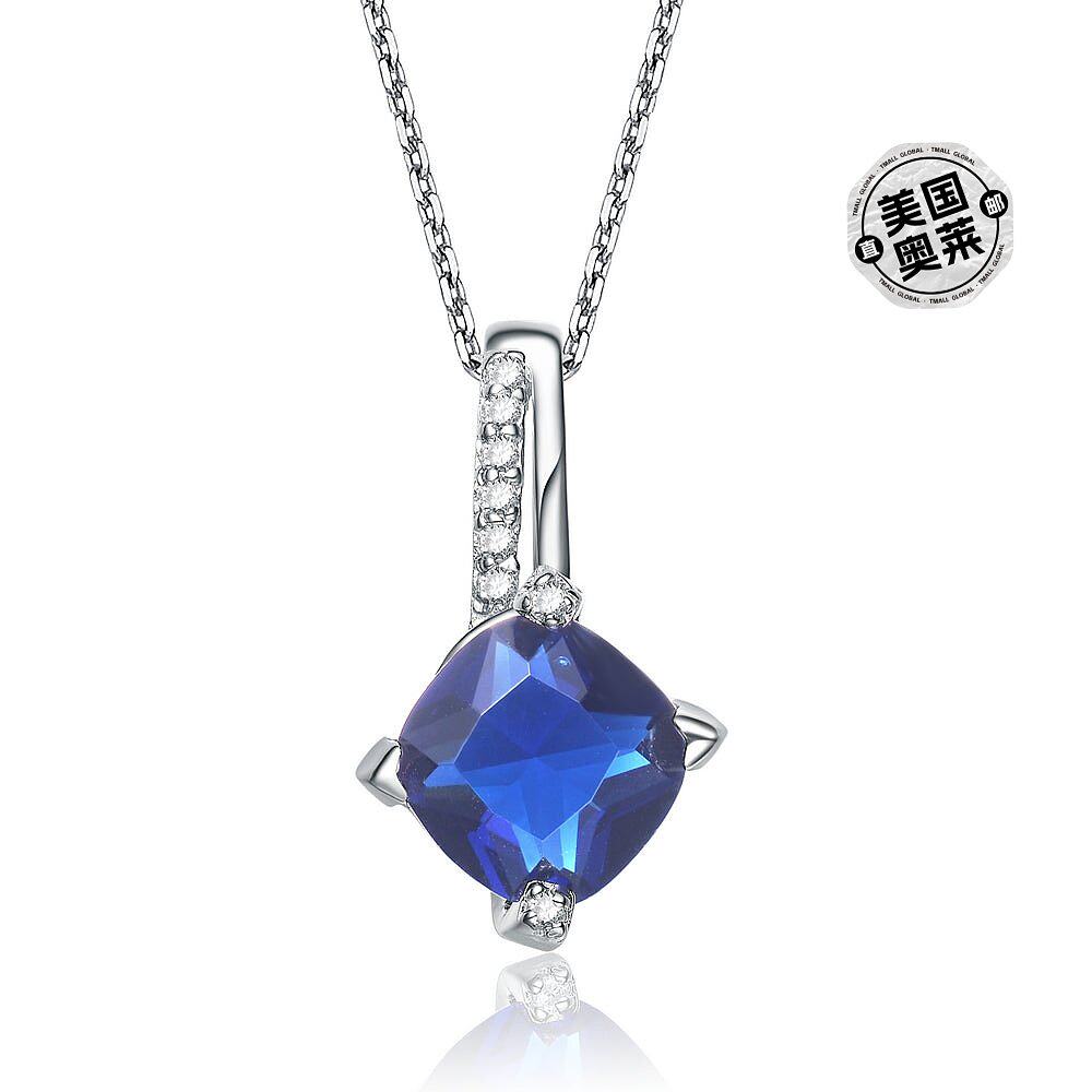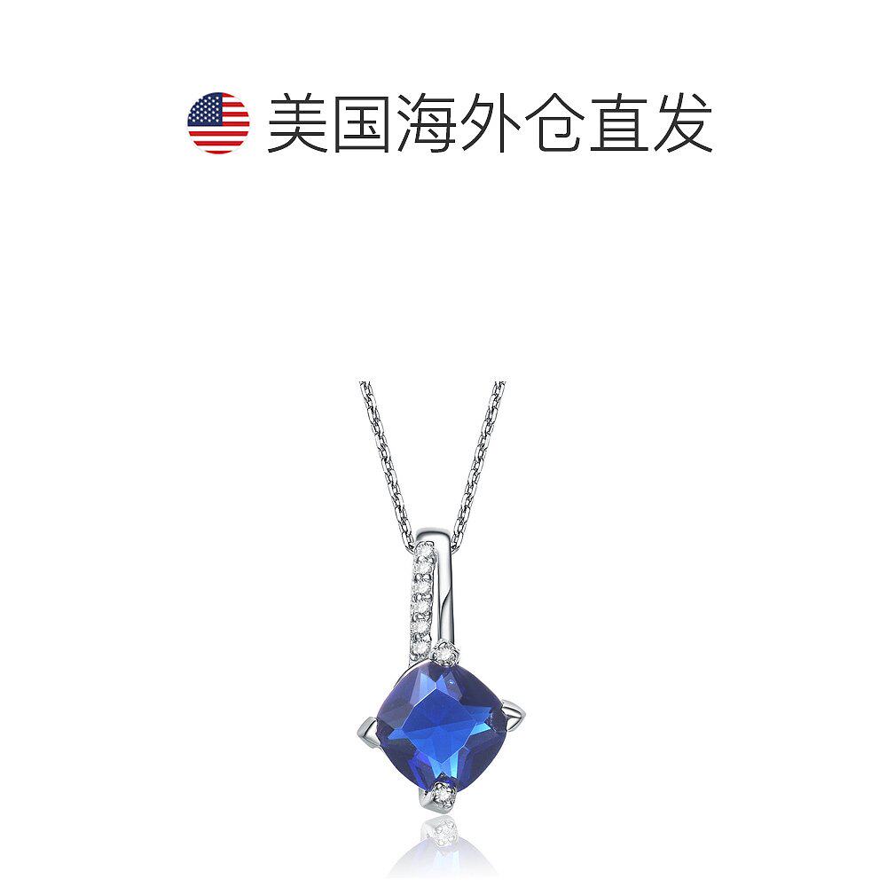 自营 geneviveGv C.z.纯银镀铑圆形蓝宝石爪镶吊坠 - 蓝色 美国奥