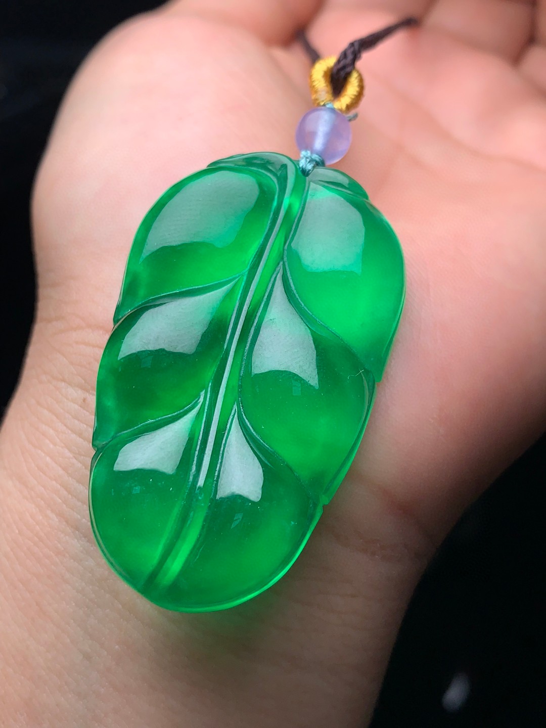 翠玉冰种满绿帝王绿叶子吊坠金枝玉叶树叶挂件项坠