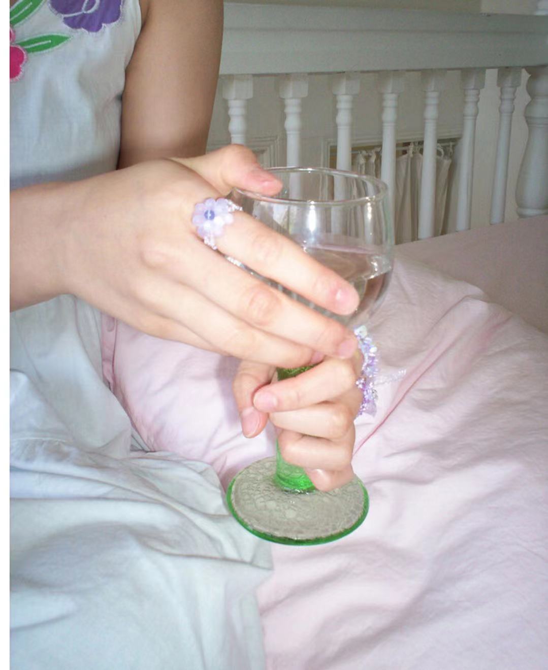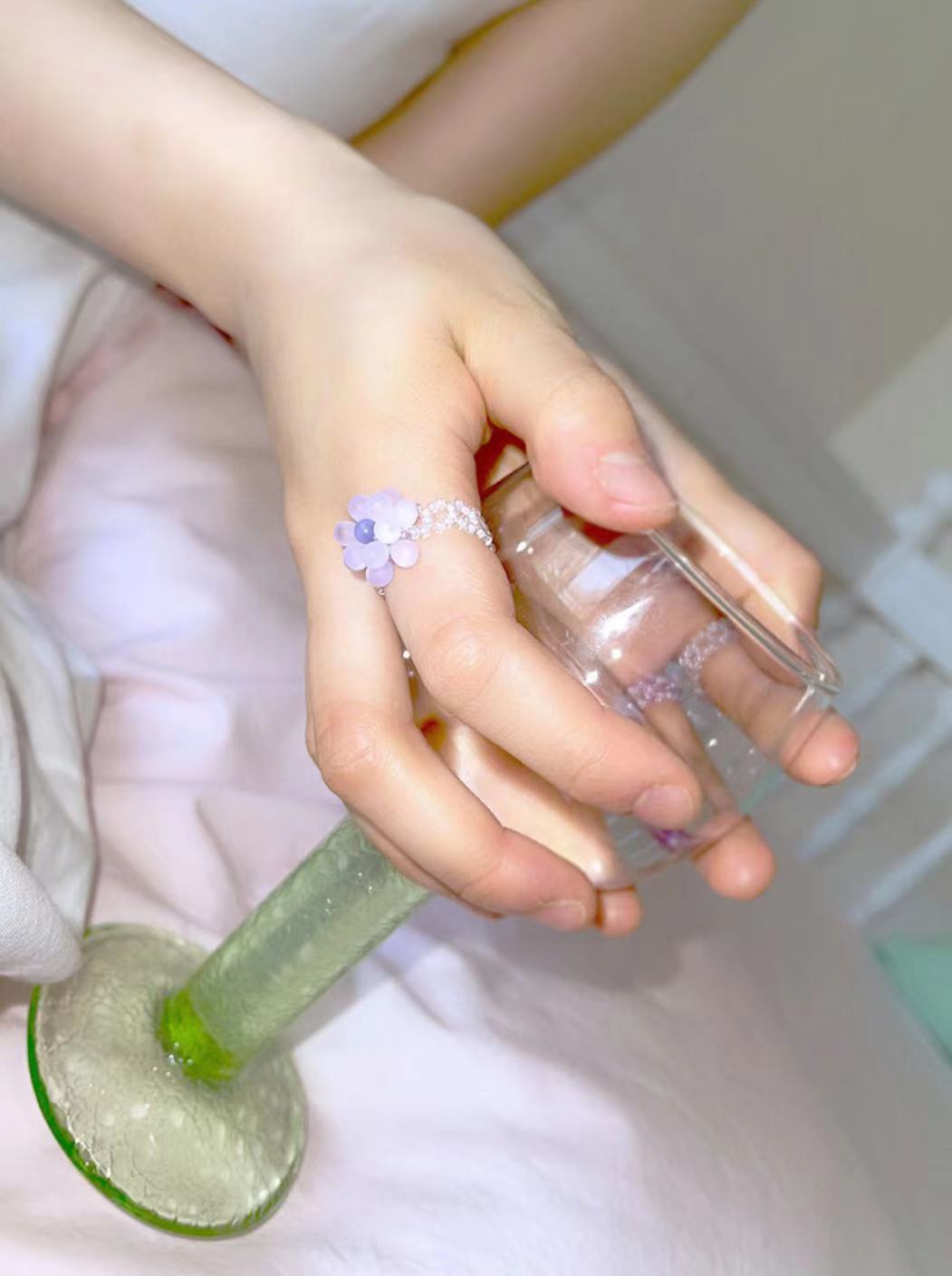 买2送1 韩国设计师Swingset同款紫荆花磨砂串珠花朵立体戒指耳钉