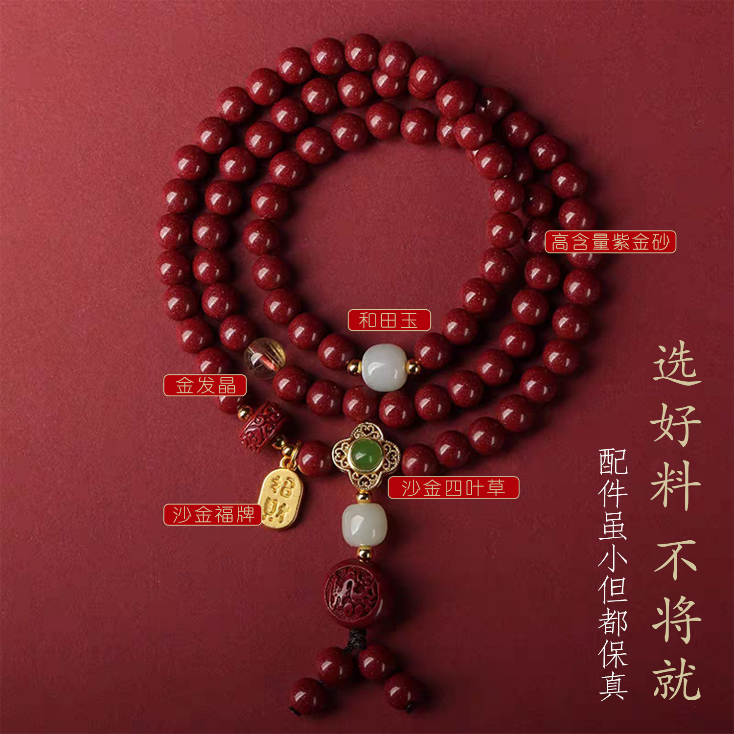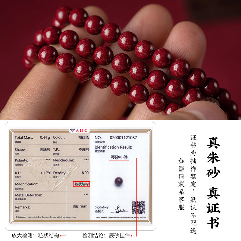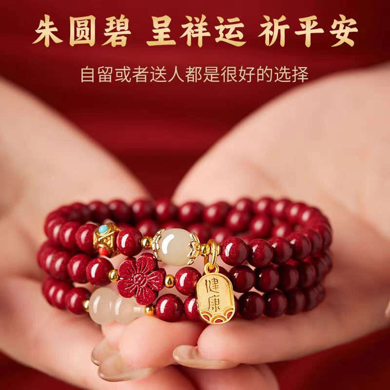 普陀山原矿朱砂十二生肖多圈手串女和田玉本命年正品男手链礼物新