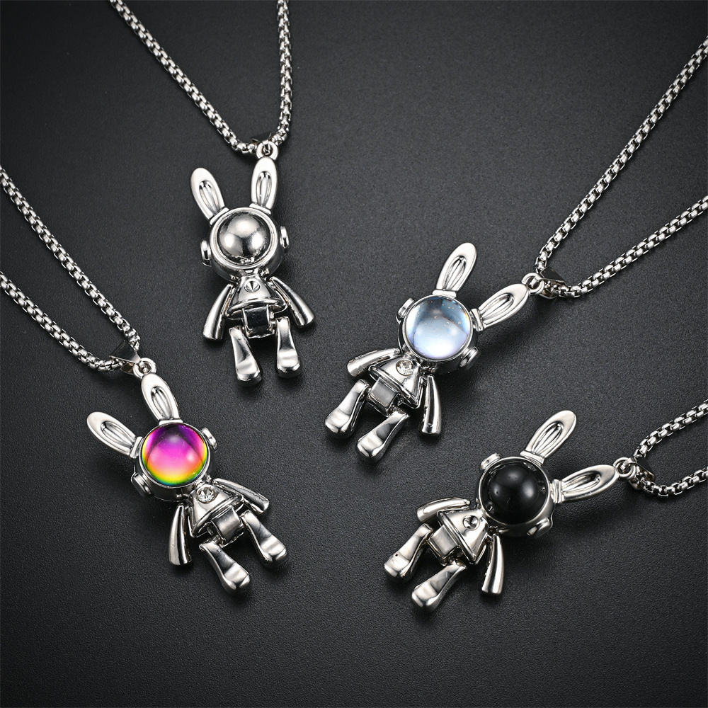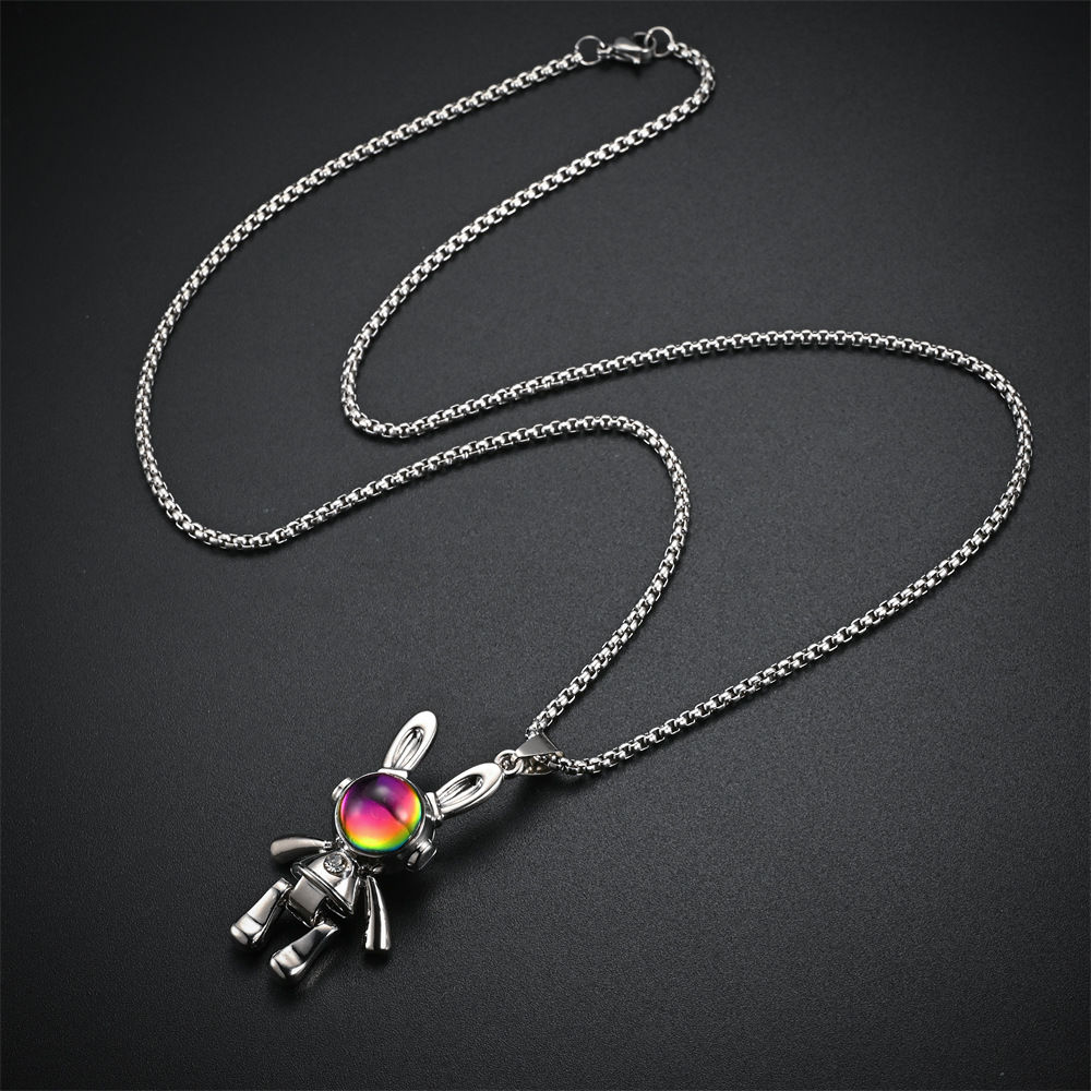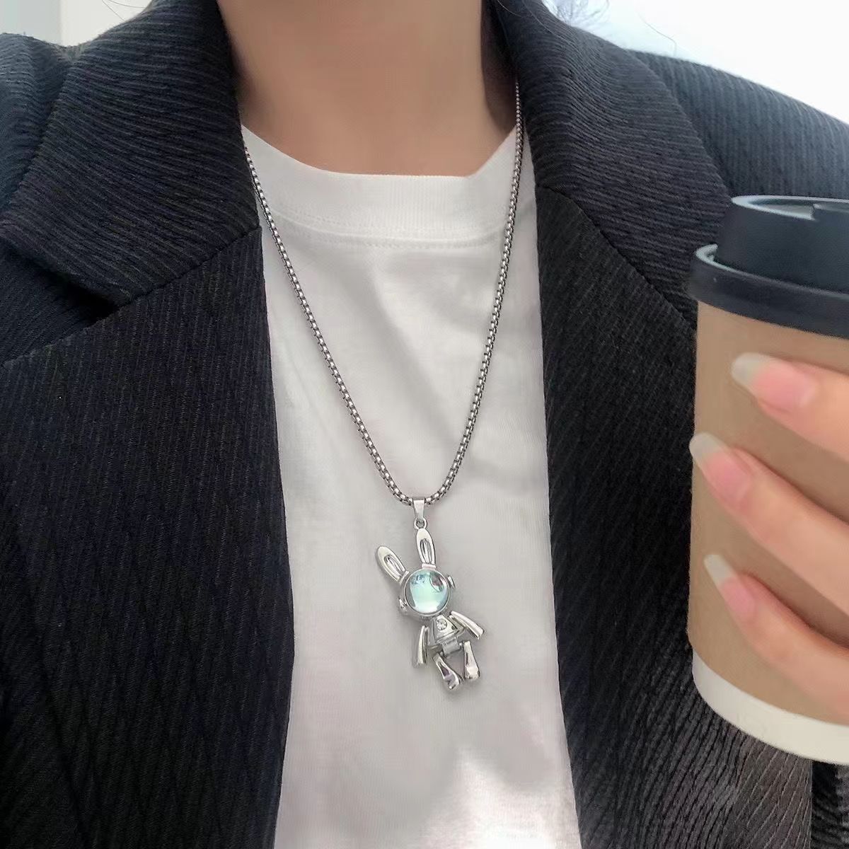 项链男新款街头嘻哈情侣饰品简约四色太空人毛衣链个性宇航员吊坠