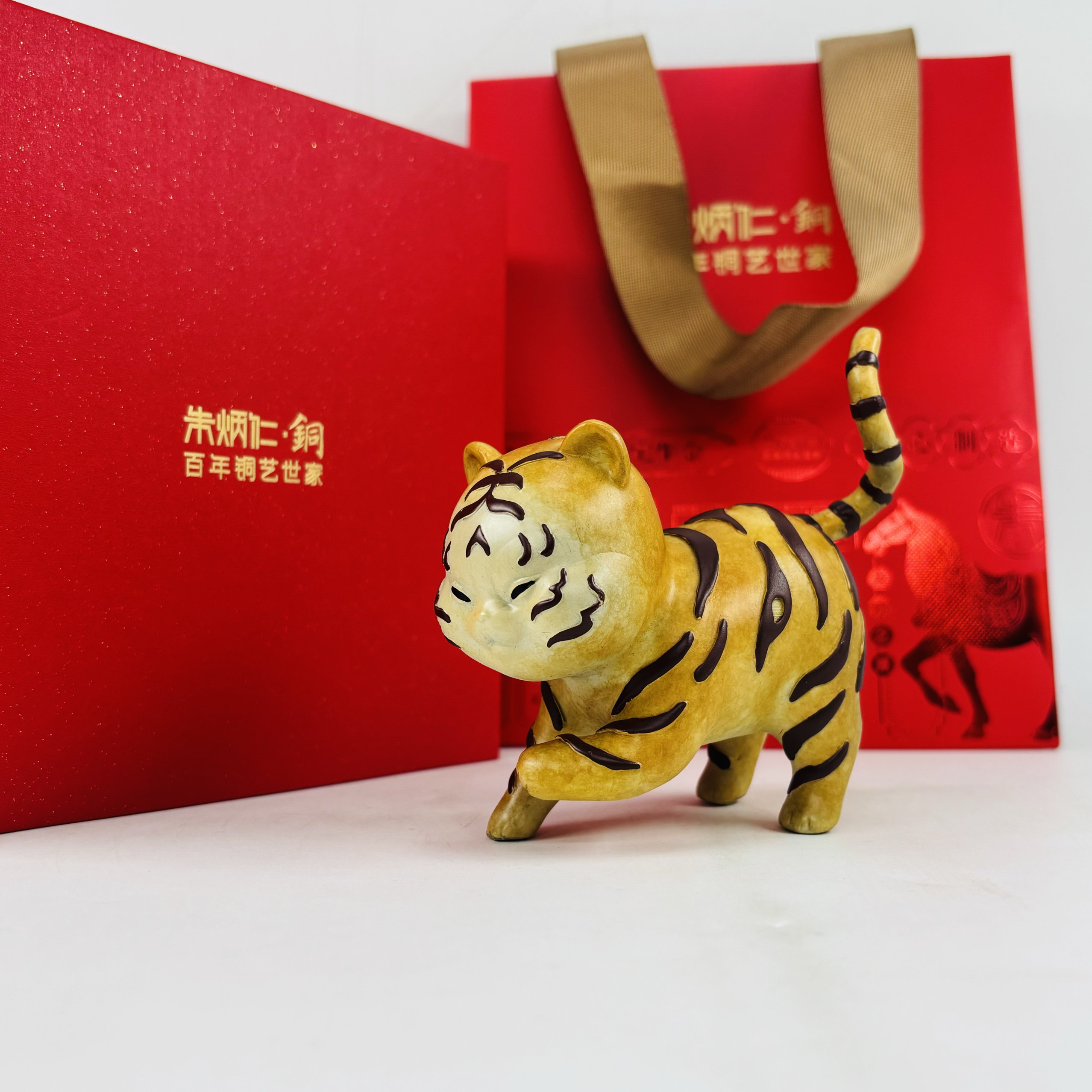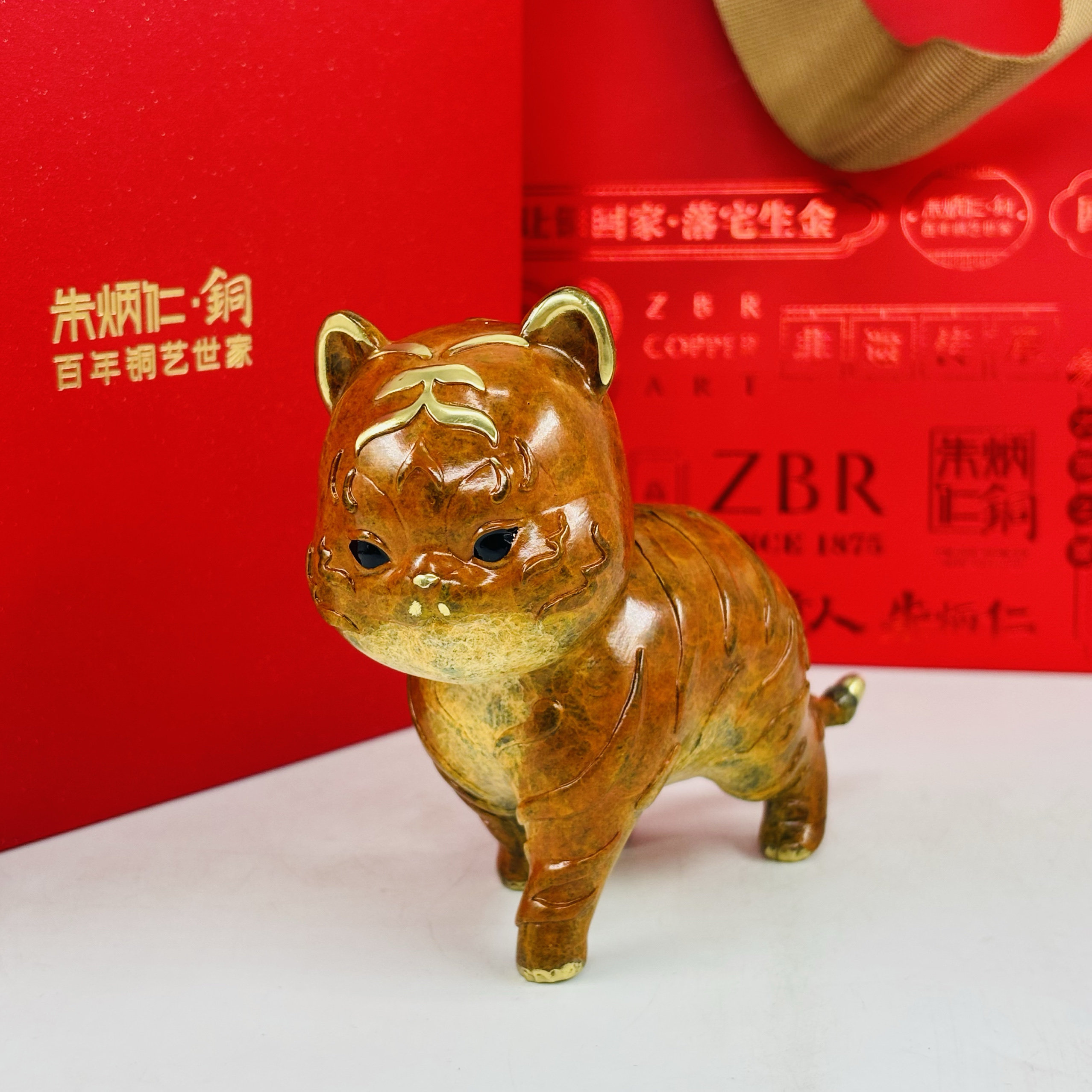 「早期稀缺」朱炳仁铜 小萌虎福虎生威十二生肖全黄铜工艺品摆件