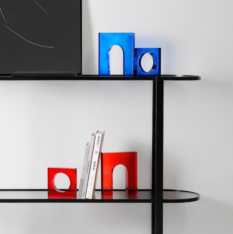 创意圆环门型书挡克莱因蓝色水晶样板房现代书挡书房桌面几何摆件