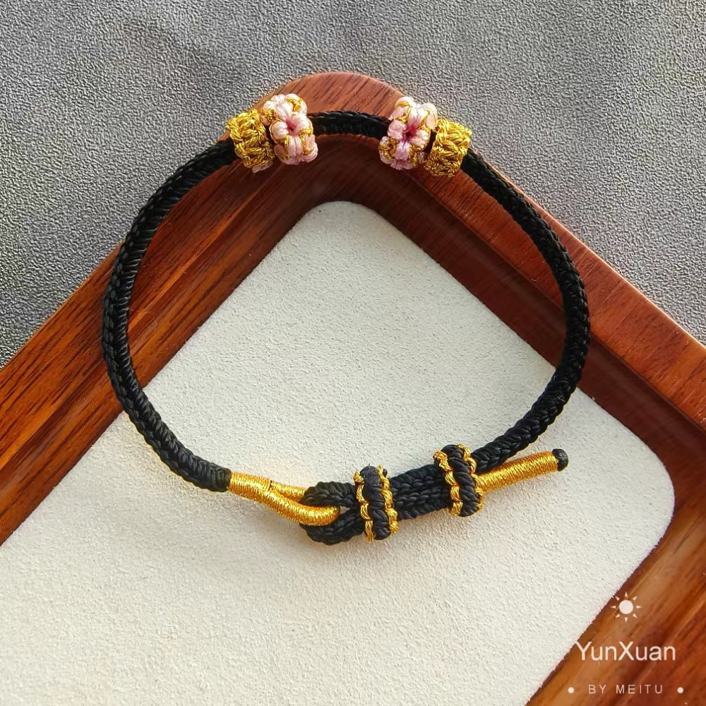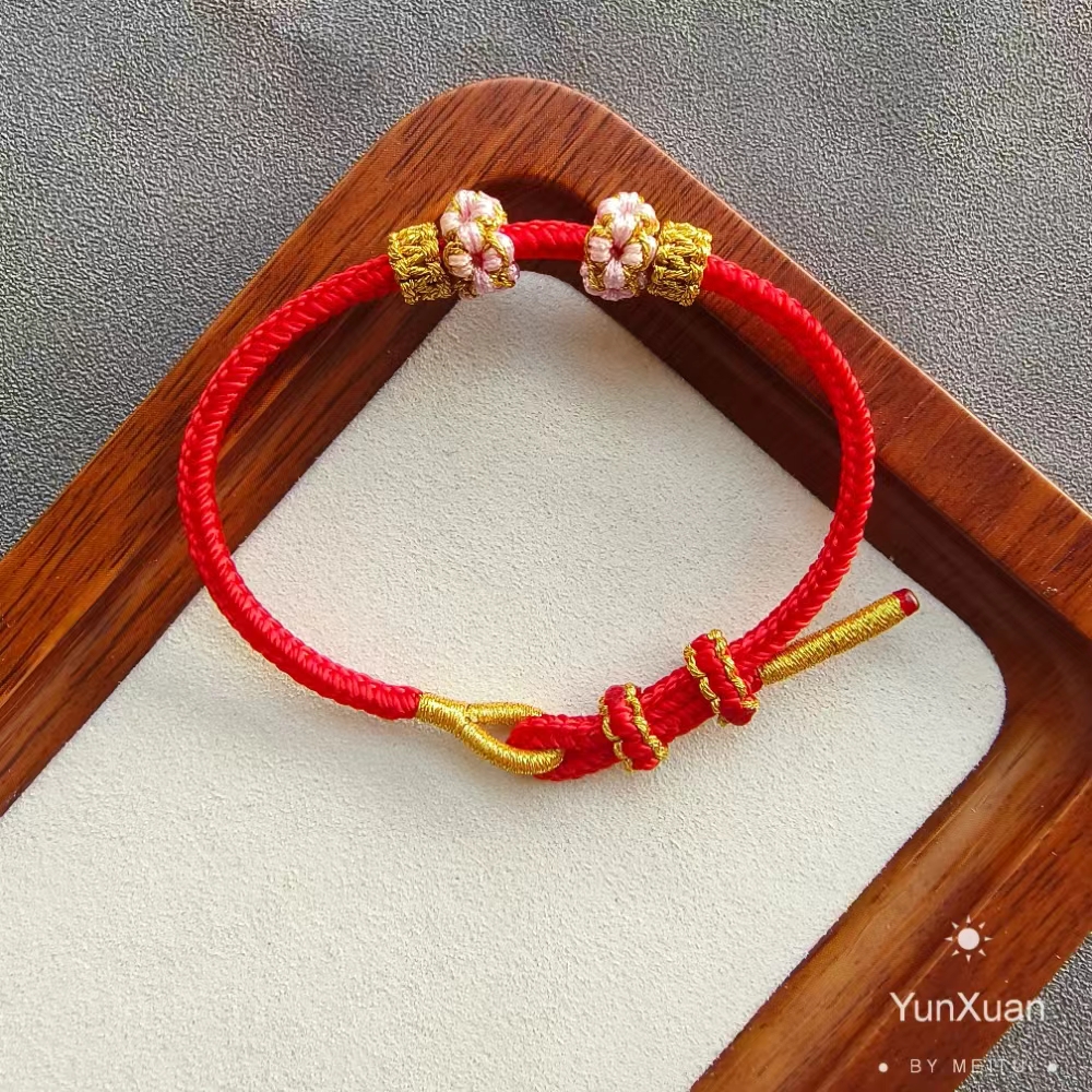 本命年桃花情侣手链可穿吊坠硬金转运珠半成品纯手工编织红绳