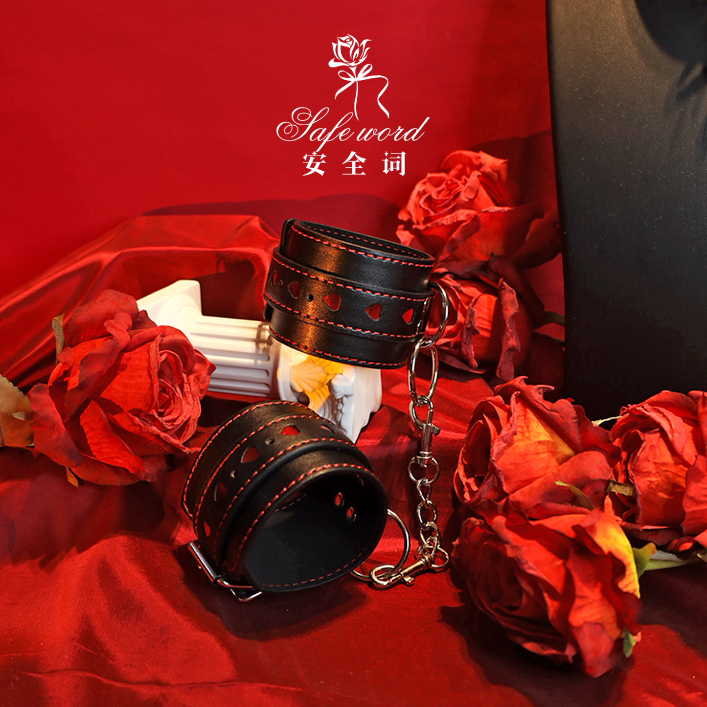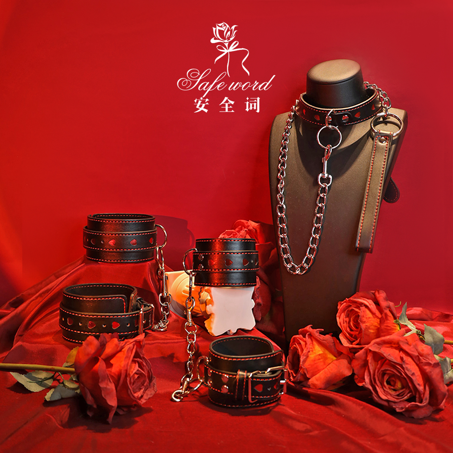 爱心眼罩套装皮革手铐脚铐k9男女颈项圈情侣玩具剧本杀拍照道具