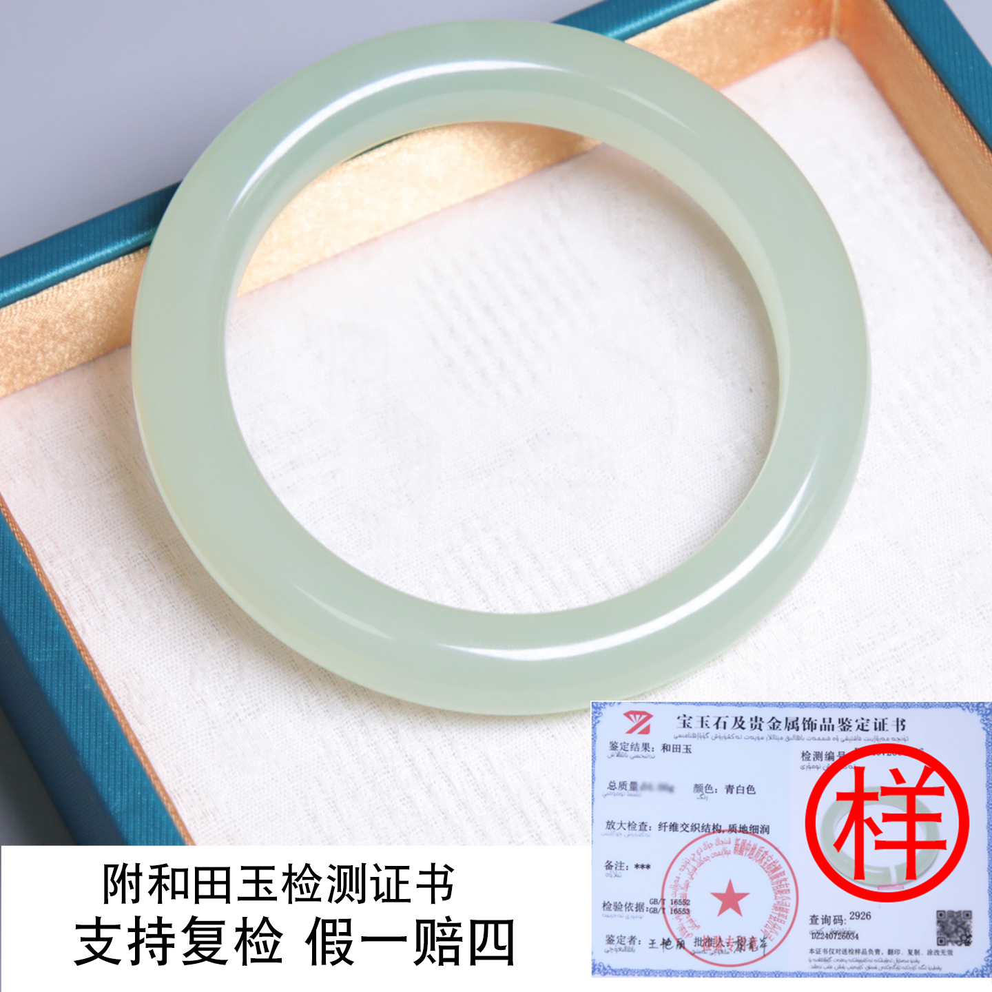 珪宝59.7mm高冰晴水宽条和田玉手镯女款玉镯子天然玉石带证书361A