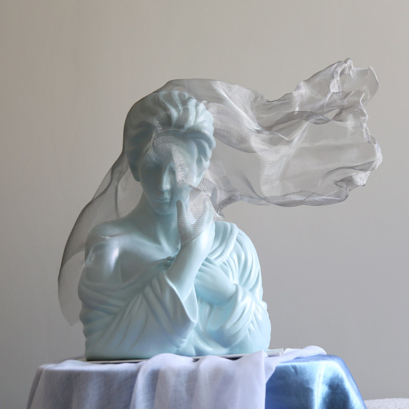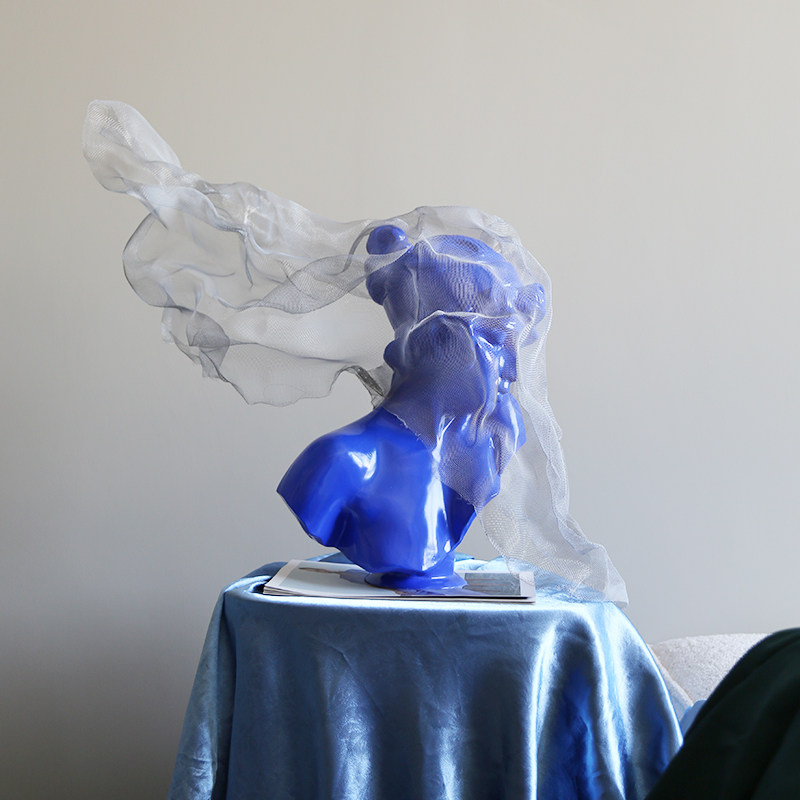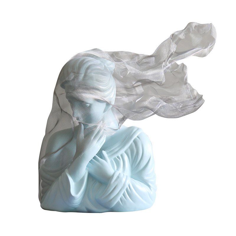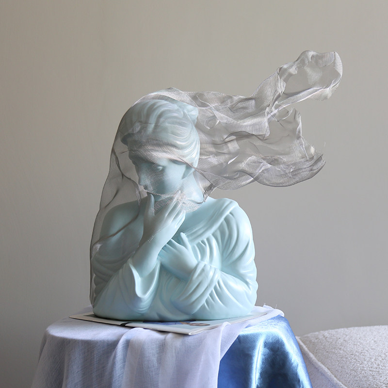 蓝色面纱女孩雕像当代雕塑摆件高级感小众装饰品客厅玄关软装艺术