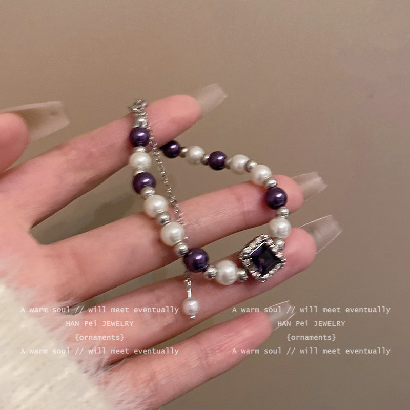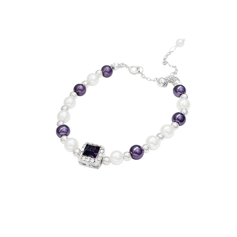 方形紫色水晶锆石手链女2026新款珍珠法式高级感轻奢精致小众配饰