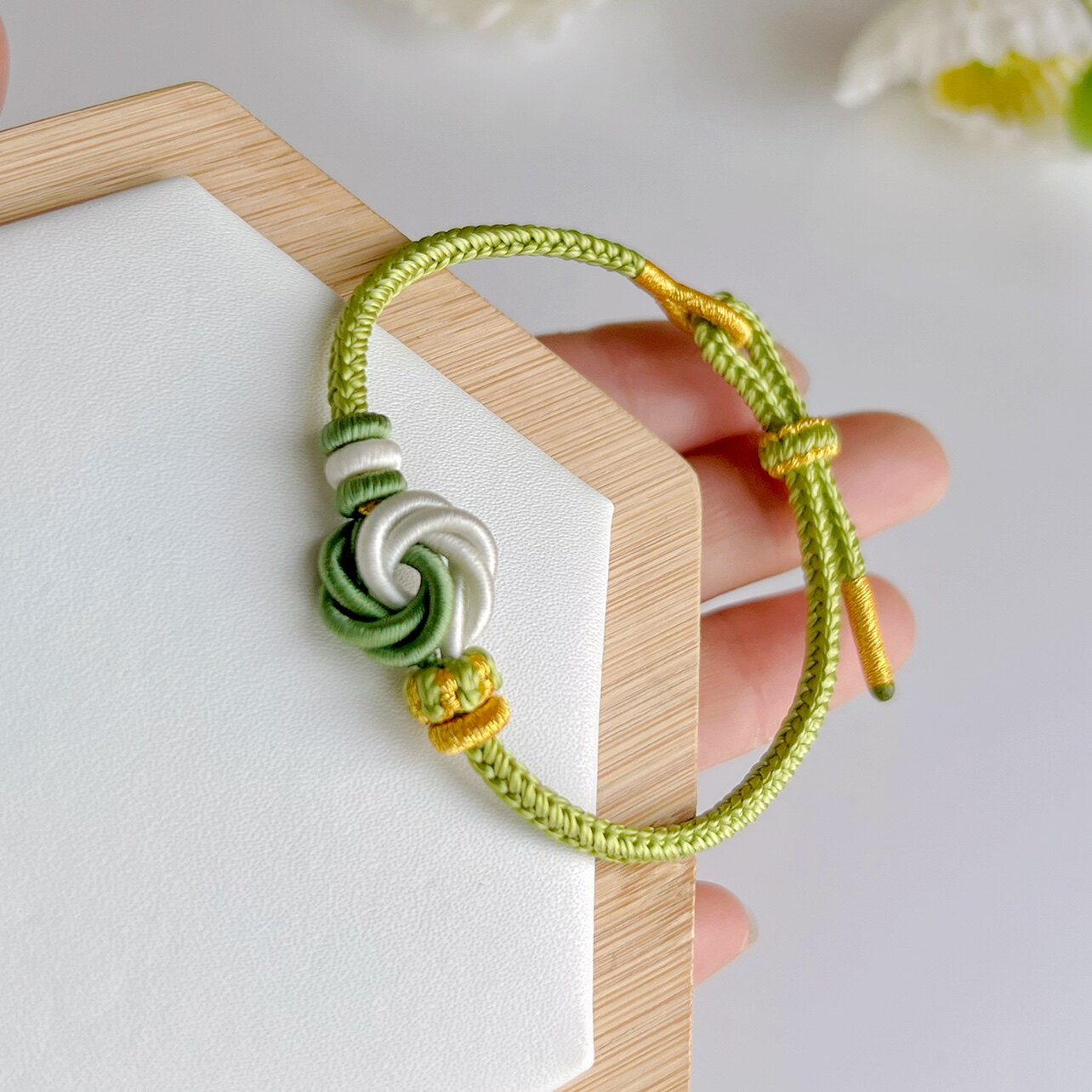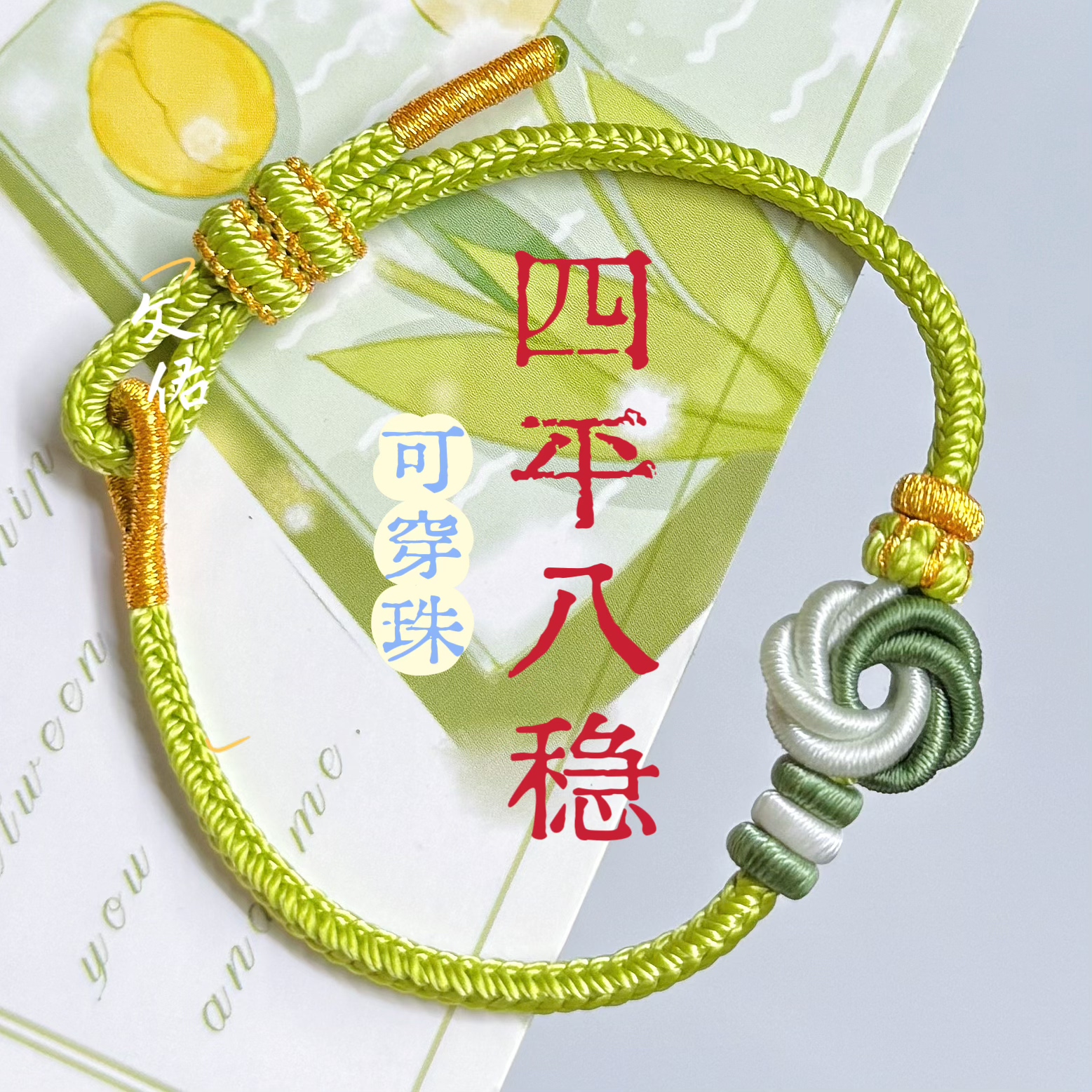 八股辫桃花手绳曼陀罗绿色可穿饰品黄金吊坠半成品女生闺蜜送人礼