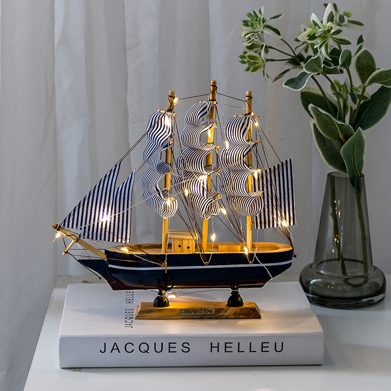 地中海风格创意家居装饰摆设 木质帆船模型小摆件手工艺木船小船