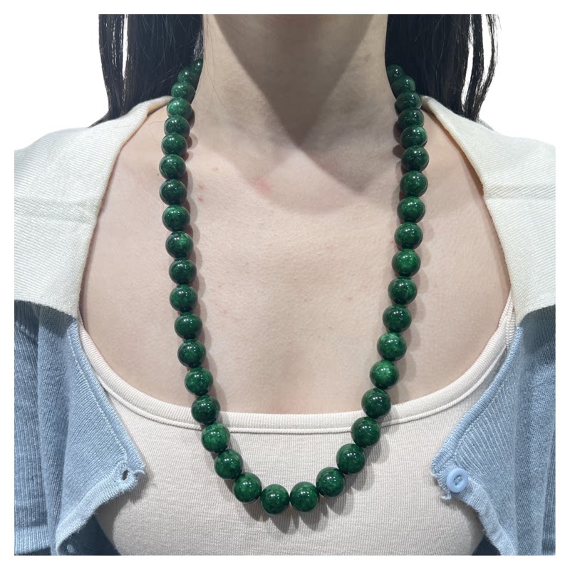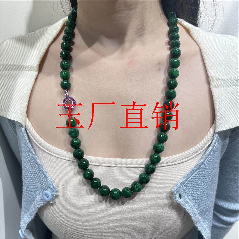 缅甸翡翠色干青大颗粒长款毛衣链阳绿色新中式圆珠玉项链国风女款