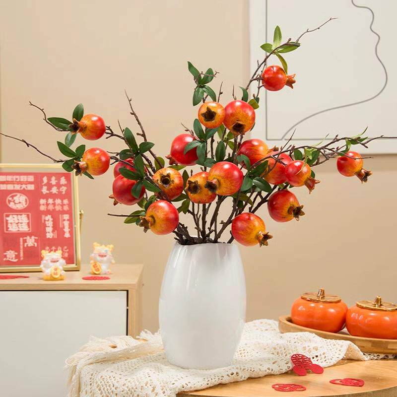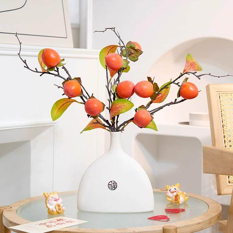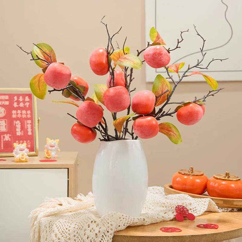 柿柿如意摆件仿真柿子果实树枝假花客厅装饰摆设花仿真花干花插花