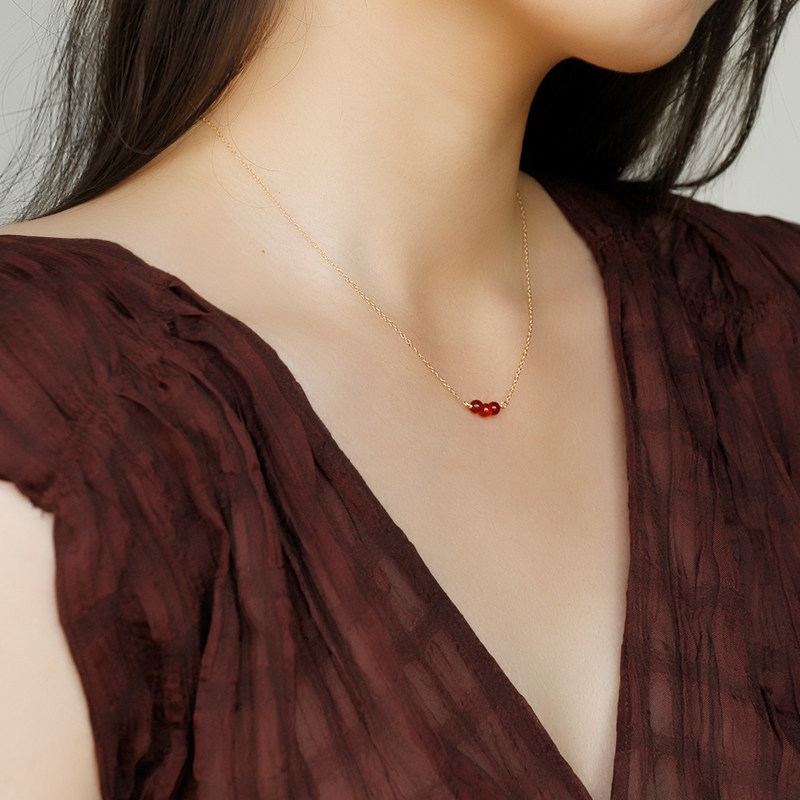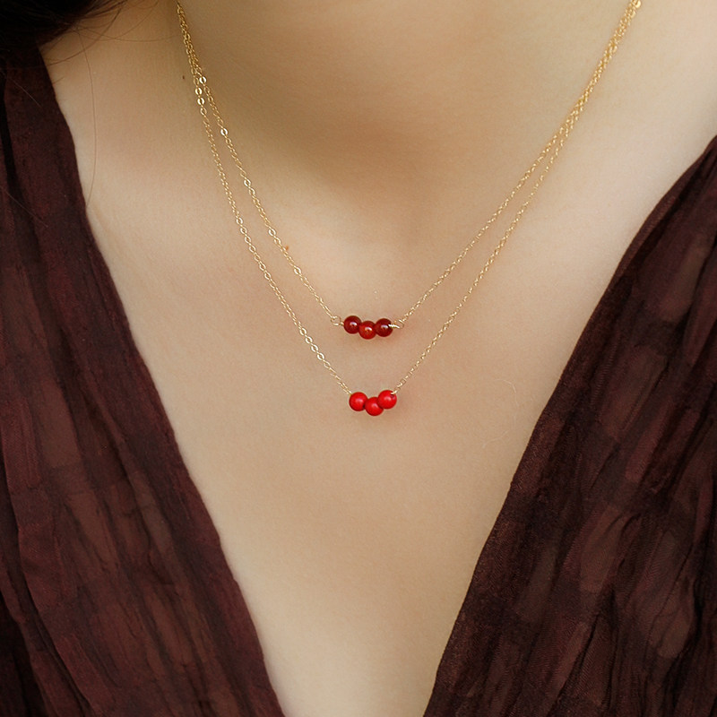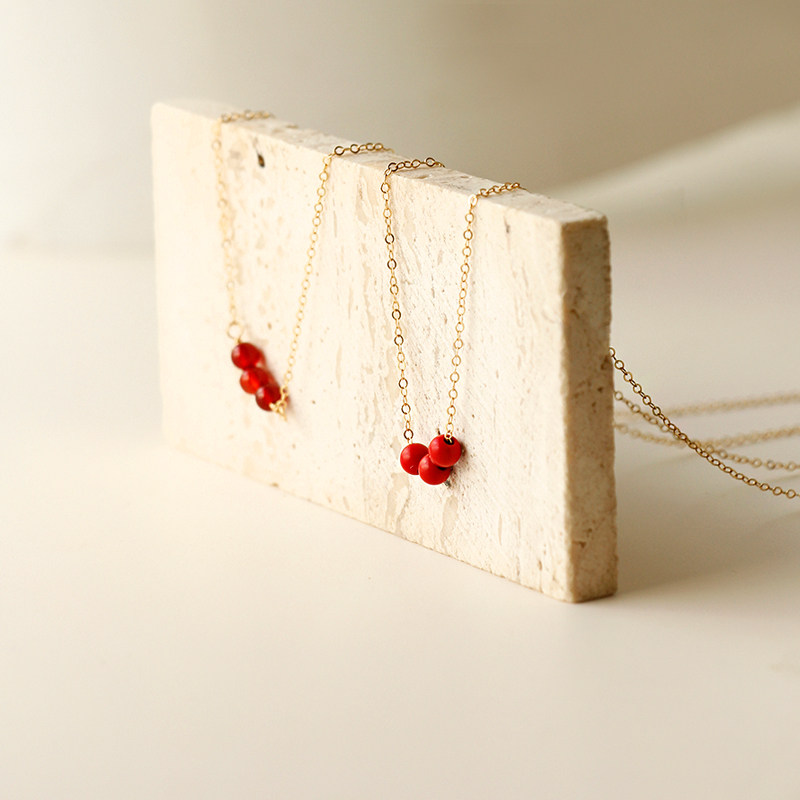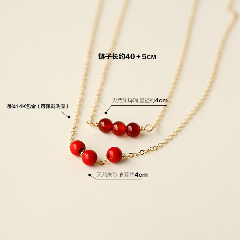诸事顺遂 天然红玛瑙朱砂14K包金项链原创设计红色鸿运连连锁骨链