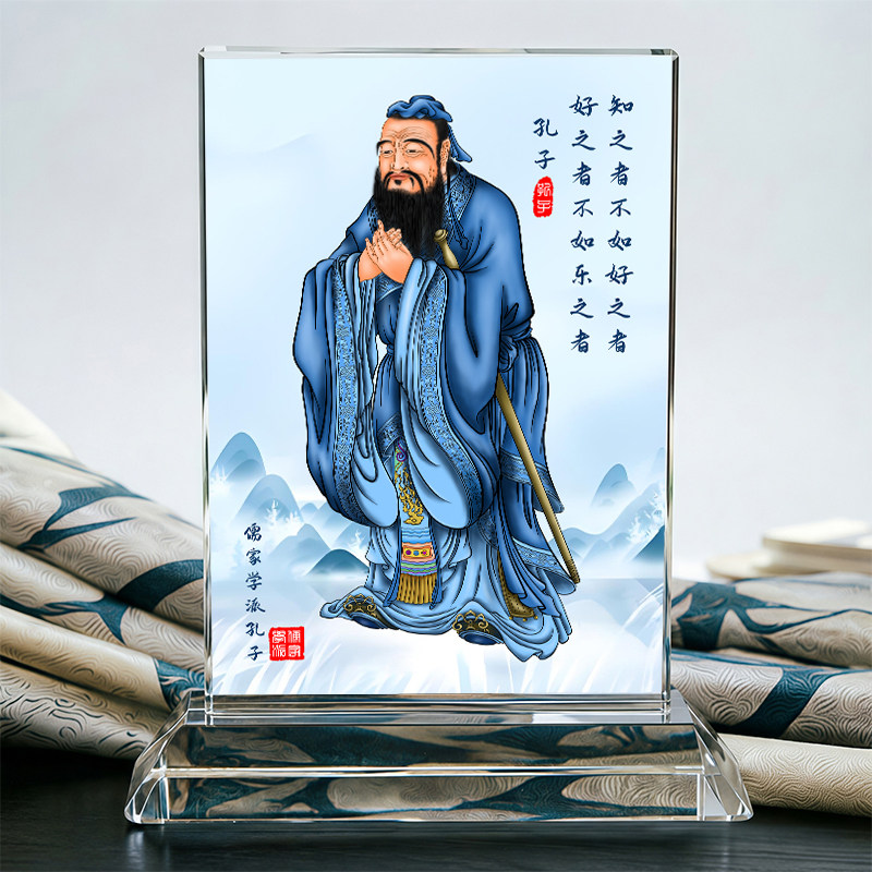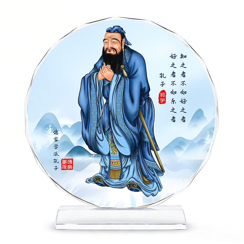 中国古风儒家孔子人物水晶摆件书房桌面圆形蓝色学生励志可定制图