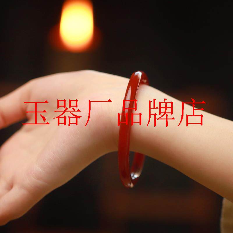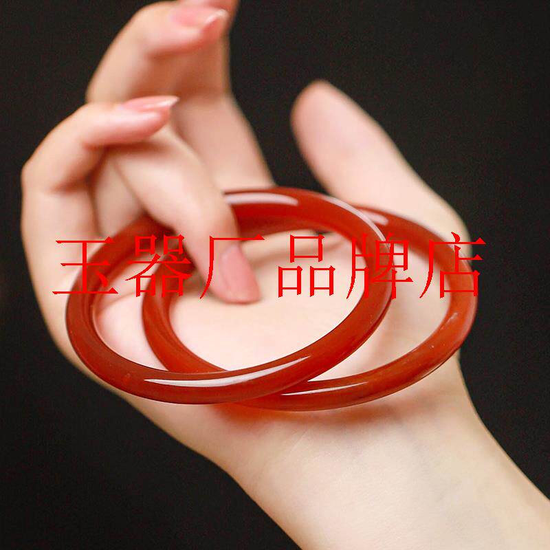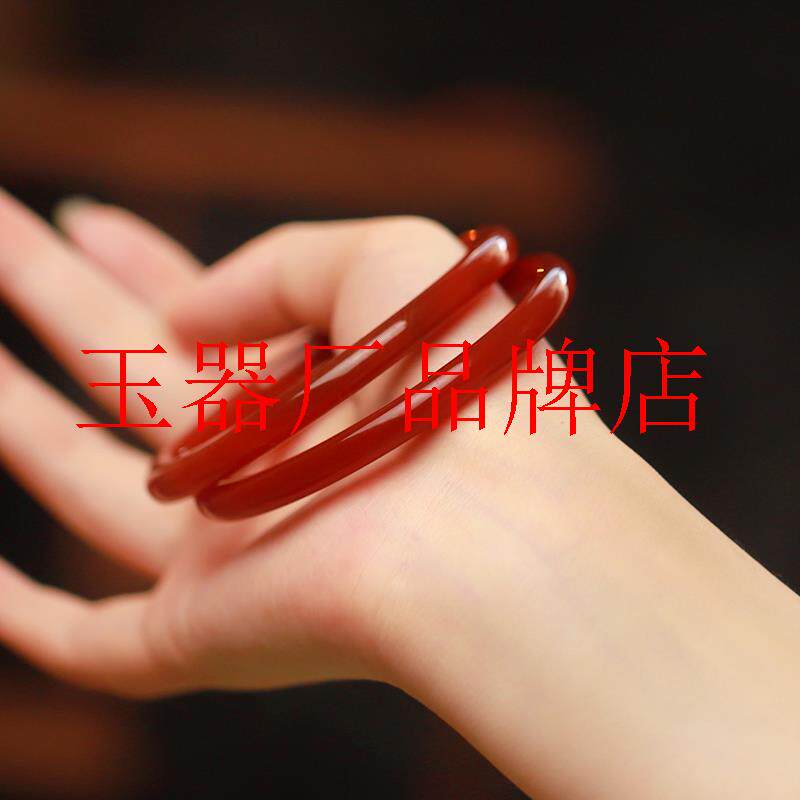 吉祥红精品红玛瑙手镯叮当镯女玉髓一对冰种红色细圆条古风手饰品