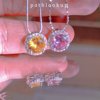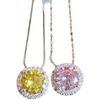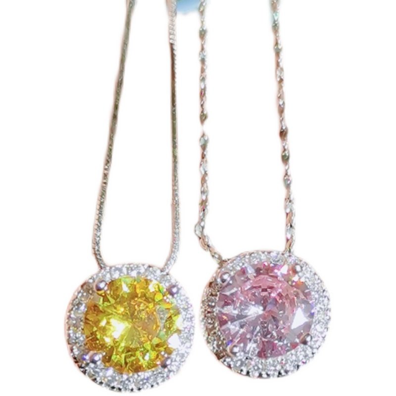 S925纯银18K白金粉色圆形高碳钻石项链女时尚吊坠ins风锁骨链礼物