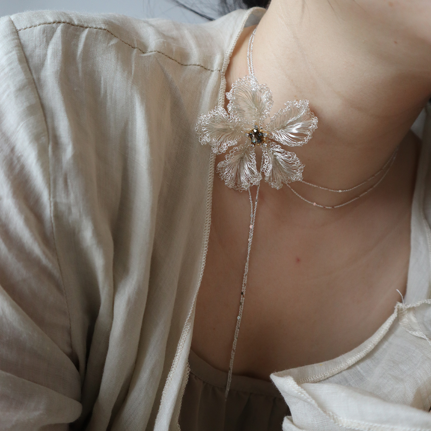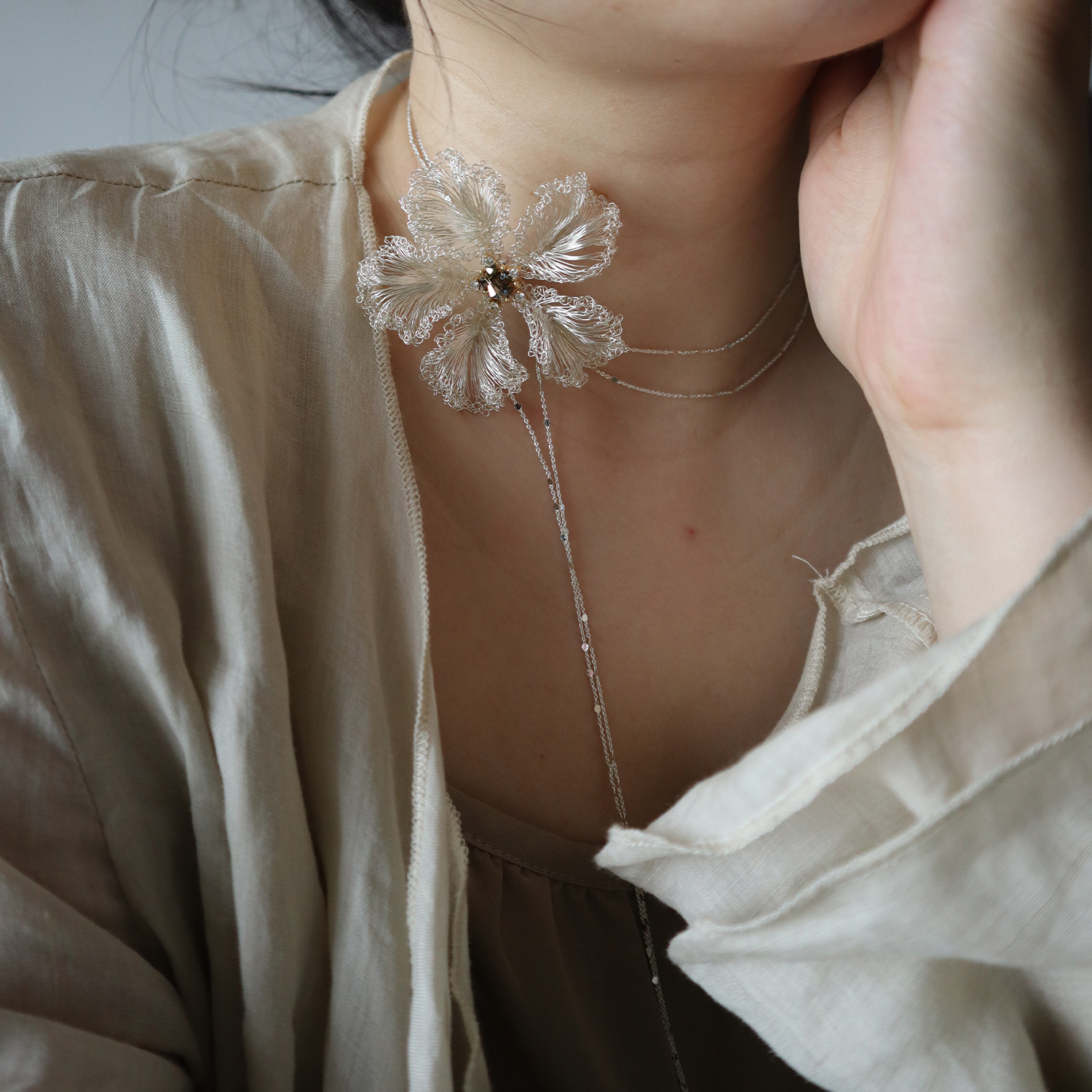 ZZXQ买手店 浅妆原创设计夕颜纯手工长款项链女轻奢小众仙气饰品