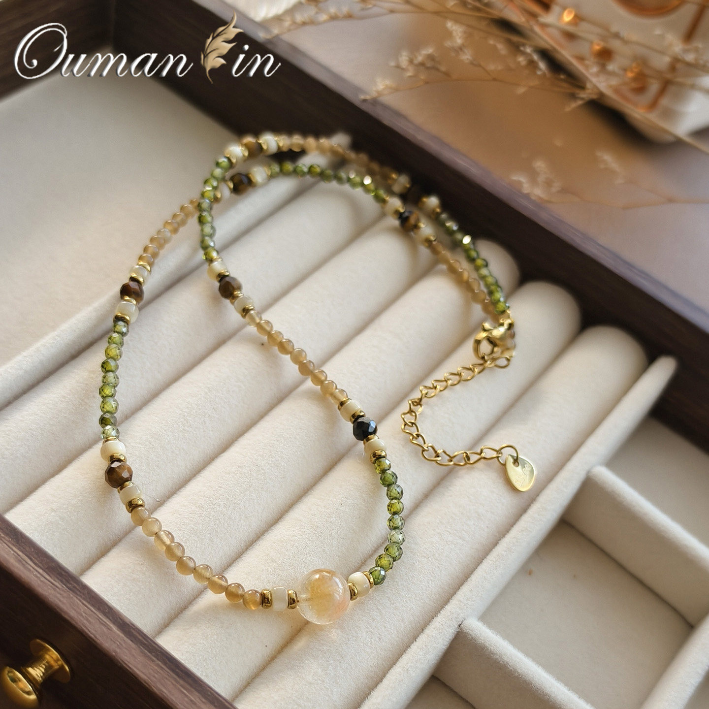春夏黄绿色串珠项链女款2026新款高级感轻奢小众叠戴天然石配饰品