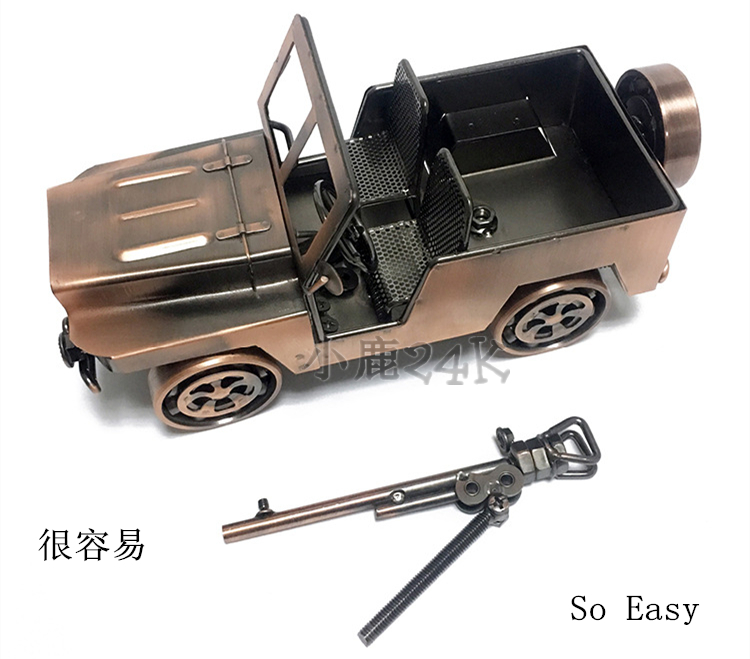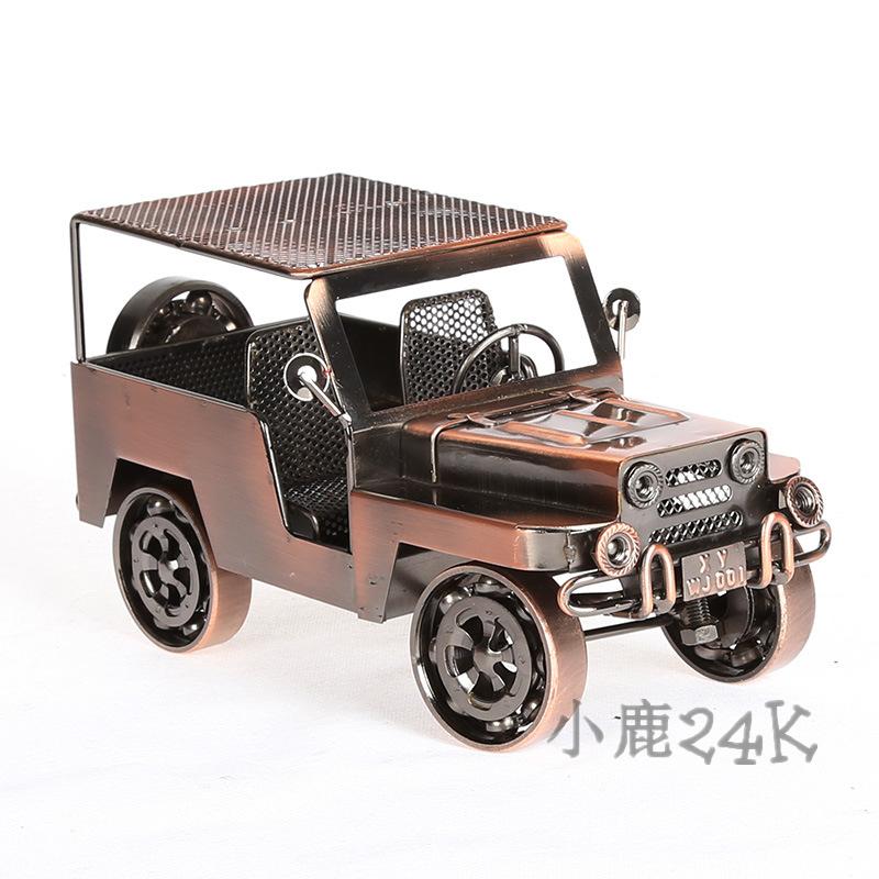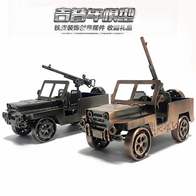 创意装饰品摆件铁艺吉普车模型金属汽车手工艺品个性带枪铁皮车模
