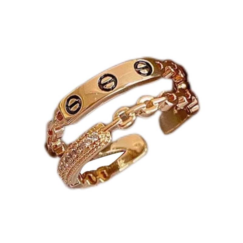 新款小众设计开口戒个性链条双层戒指时尚独特气质百搭指环手饰女