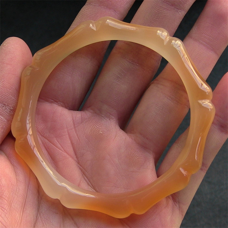 天然巴西玛瑙手镯/巧雕竹节/节节高升/香橙色/水润通透玉髓2004