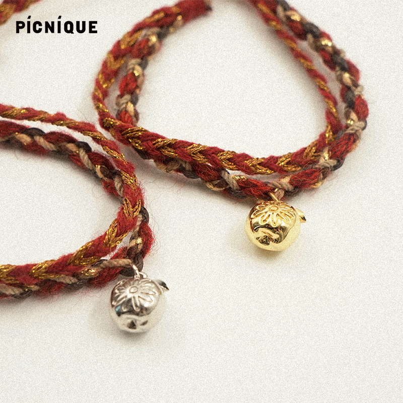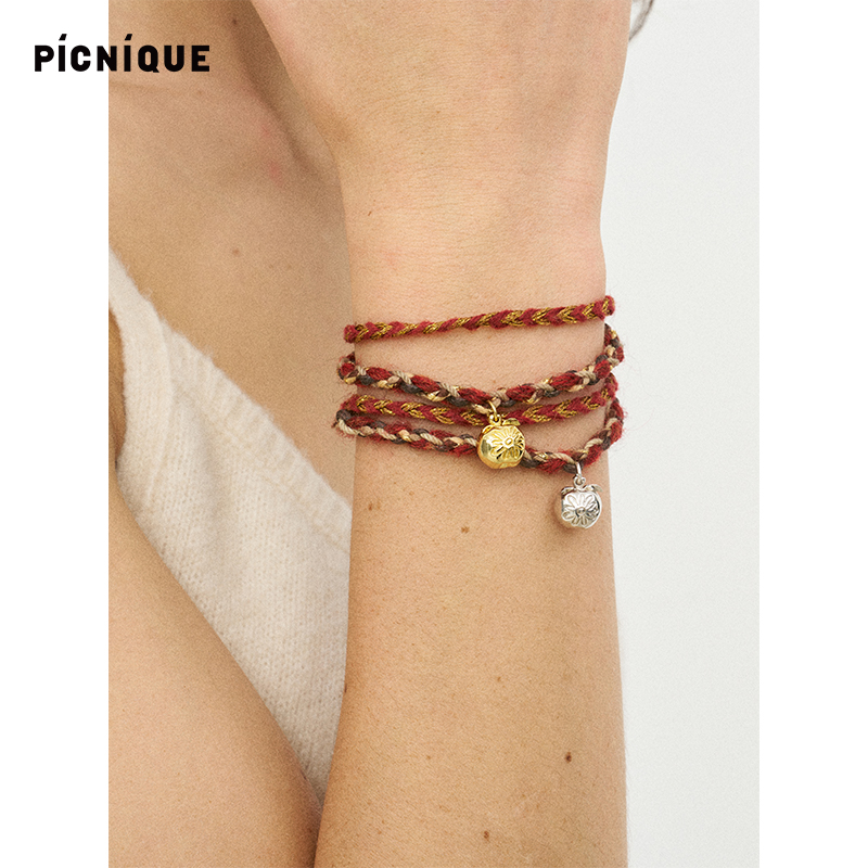 Picnique 平安果红绳编织节日手绳手链本命年简约金苹果