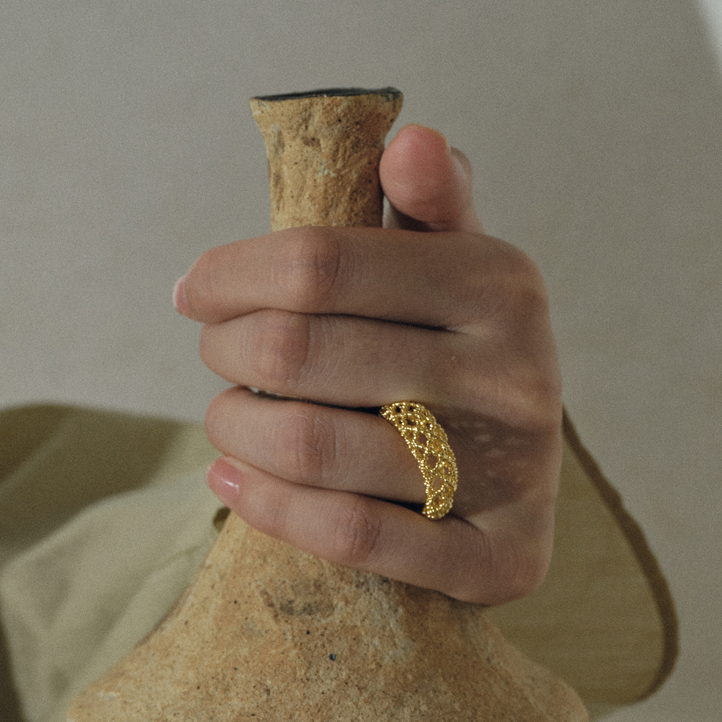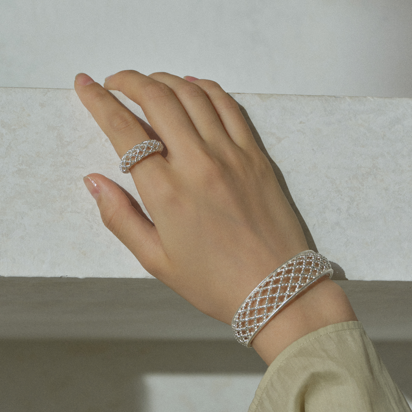 SOFT ROOM镂空月牙戒指网格纹配饰女小众设计高级感轻奢简约百搭