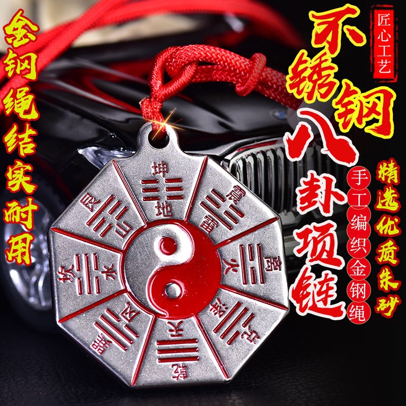 速发纯铜阴鱼朱砂九宫八卦镜吊坠太极图男项链本命年解太岁扣