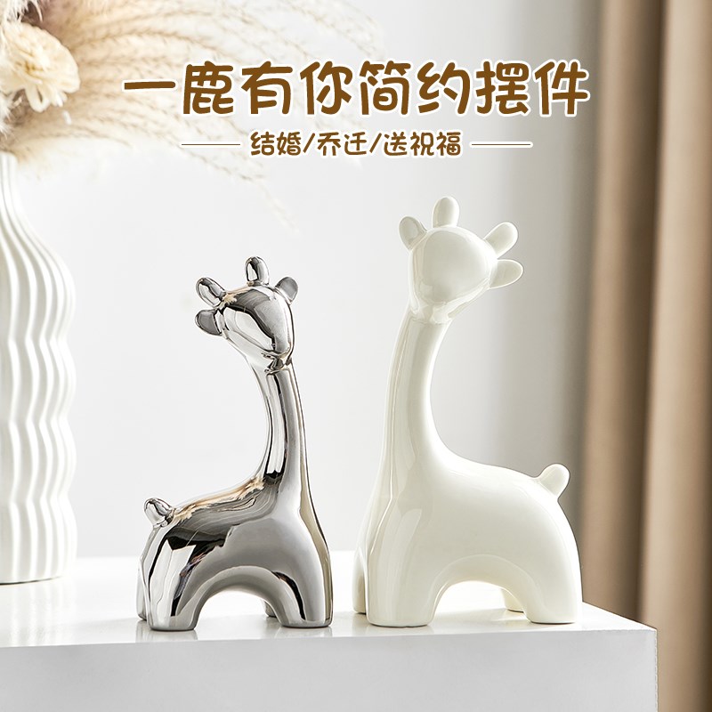 简约小众陶瓷小鹿摆件家居装饰品轻奢高级电视柜客厅酒柜装饰摆件