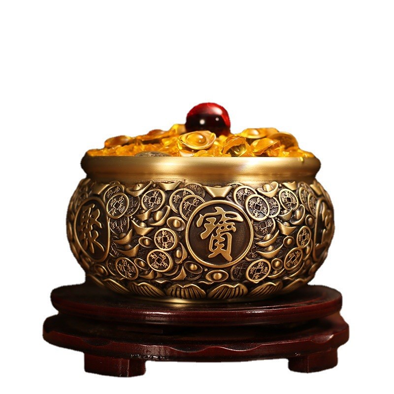 黄铜聚宝盆米缸存钱罐p家居工艺品客厅办公室桌面摆件客厅办公室