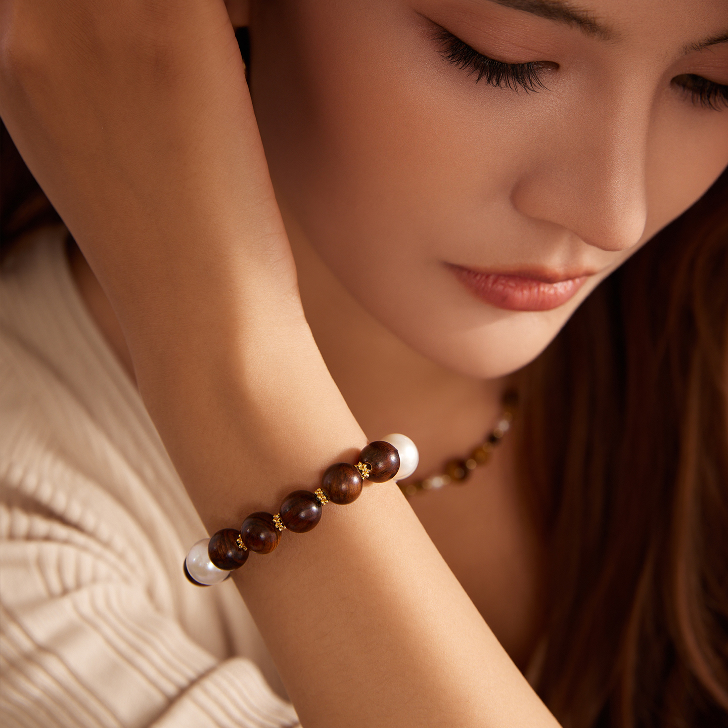 Manreya玛芮雅手串檀珠映月珍珠檀木手链新中式原创国风高级感