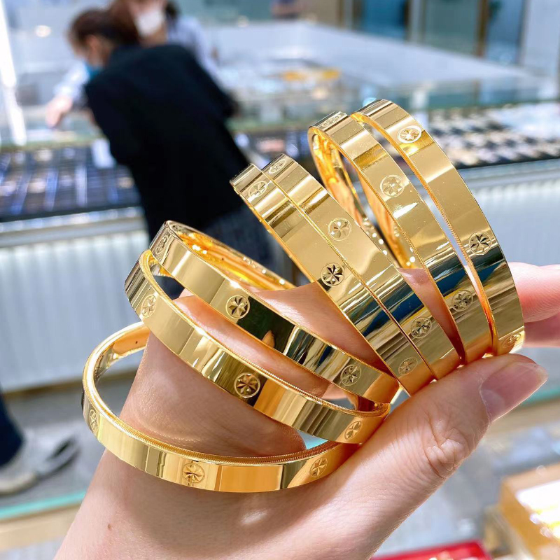 黄金手镯女999足金CNC车花光面金镯子时尚简约女款螺纹手环送女友