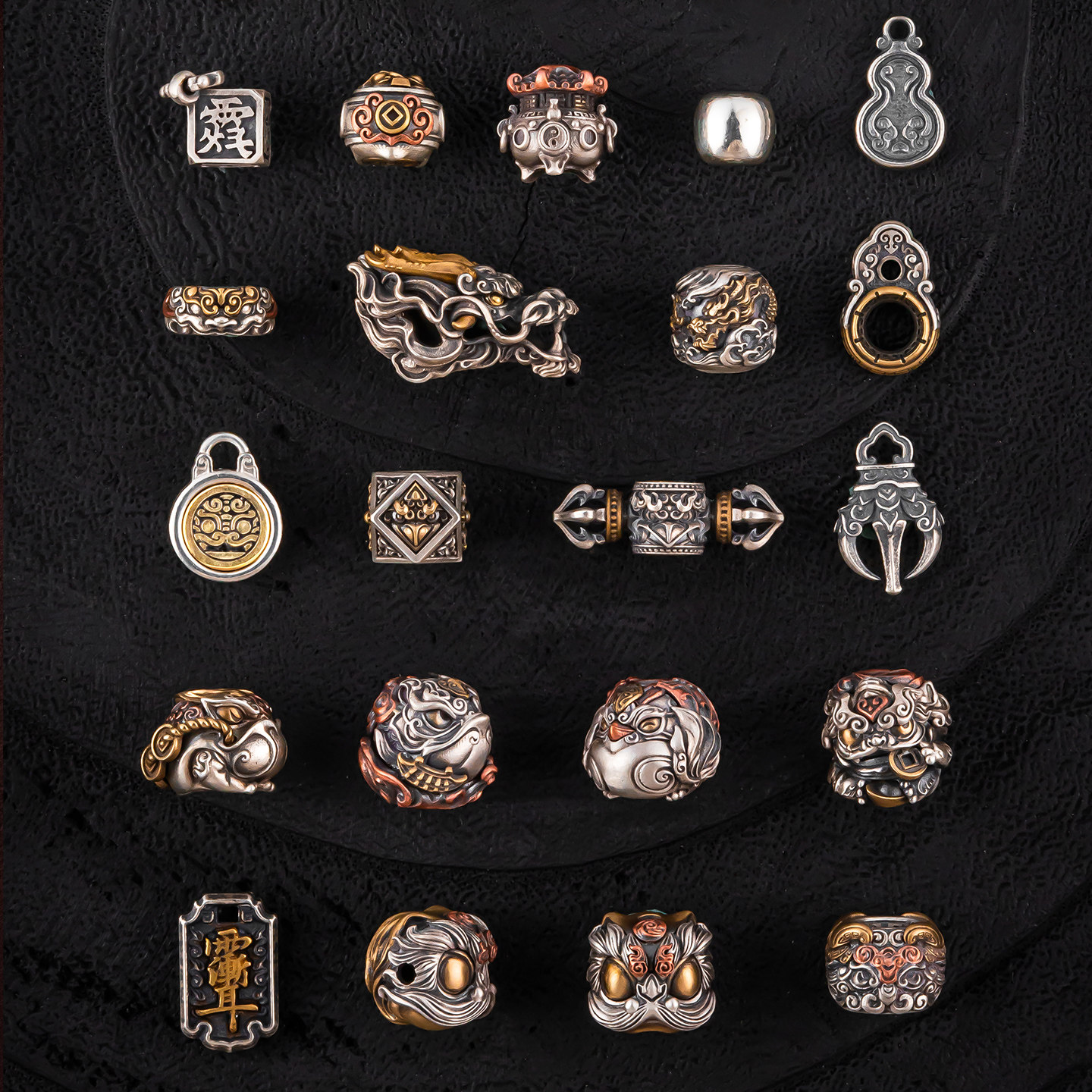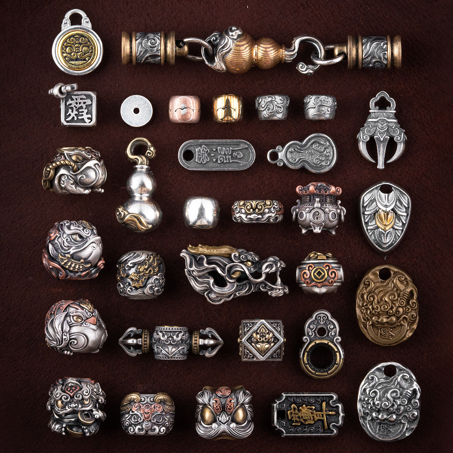 琢匠貔貅隔珠合集猴头三通散珠银饰配件手串配国风高端文玩配珠