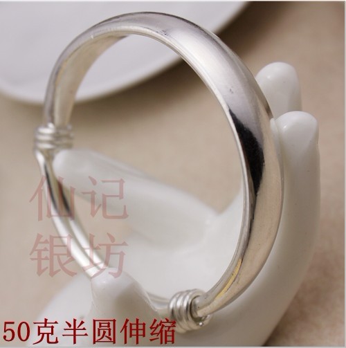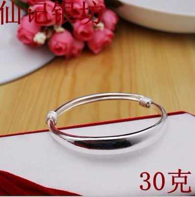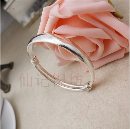手工S999足银手镯女纯银饰品女生复古经典老式实心光面推拉银镯子