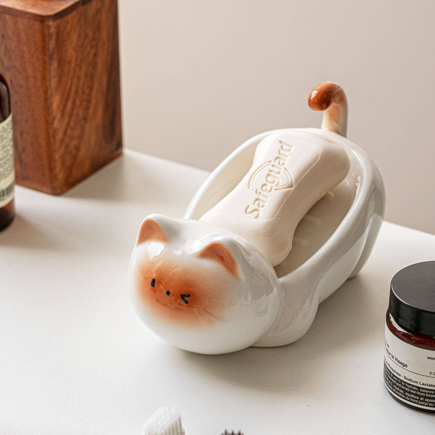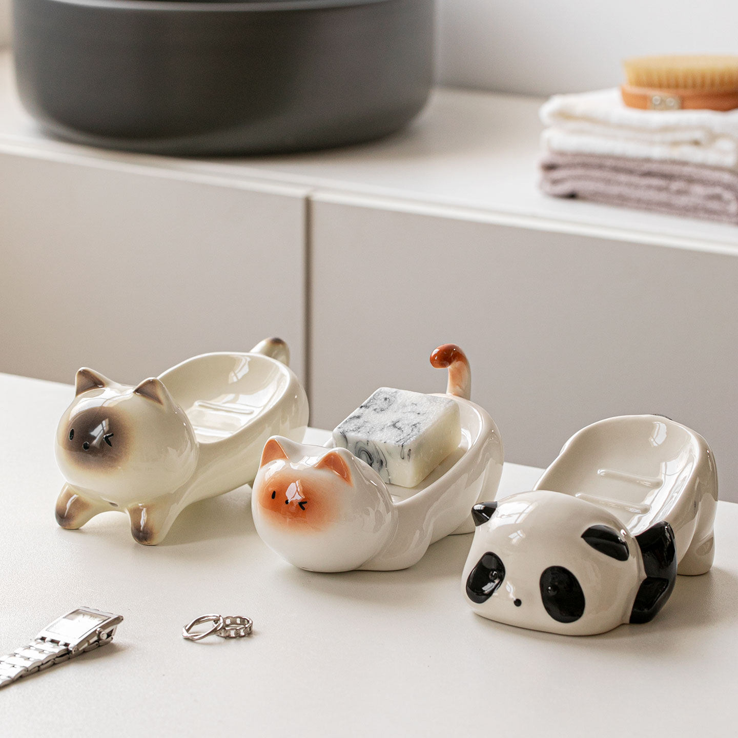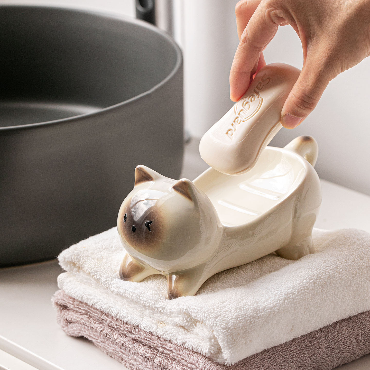 可爱陶瓷肥皂碟家用浴室洗手台香皂盒创意卡通小猫肥皂架收纳摆件