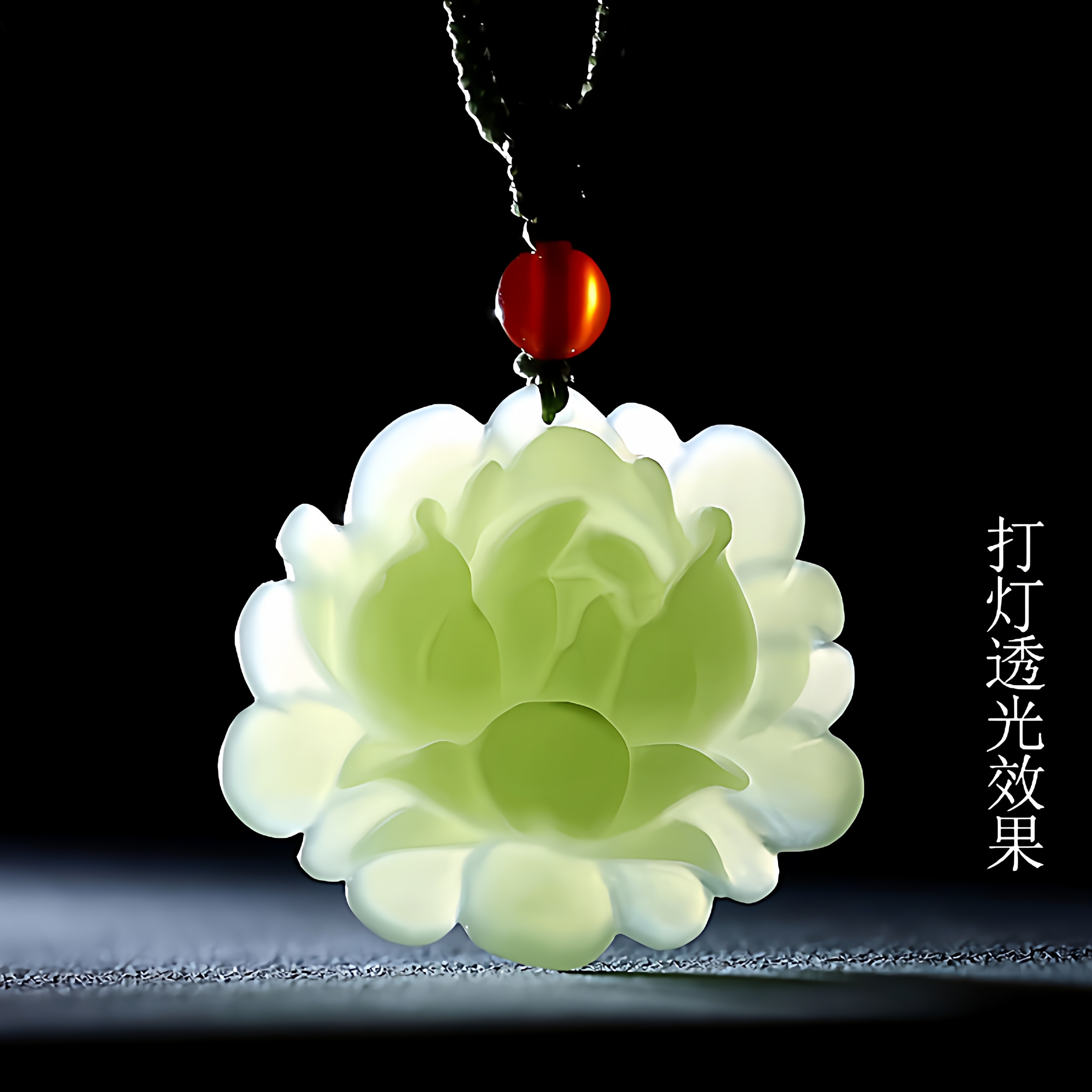 莲花玉石项链吊坠男女中国风车载挂件包挂饰仿和田玉绿色玉佩项坠