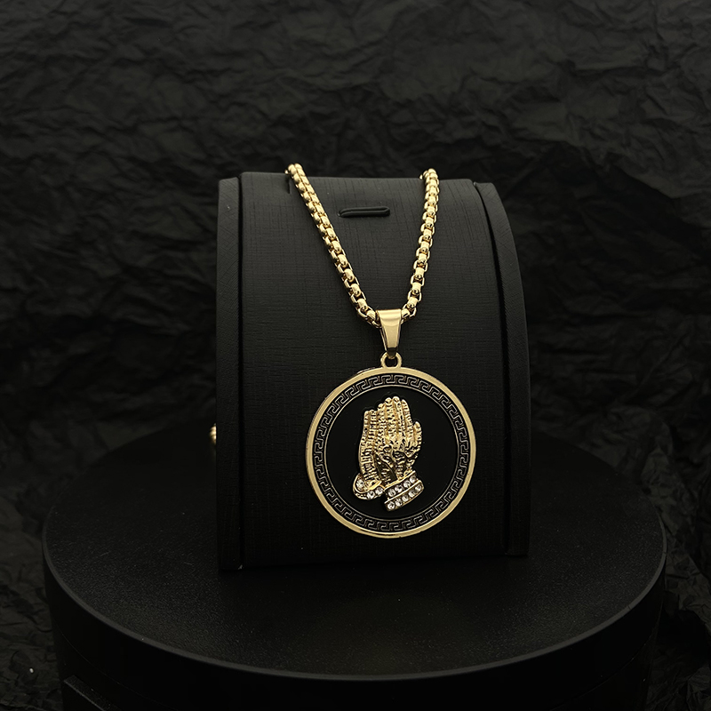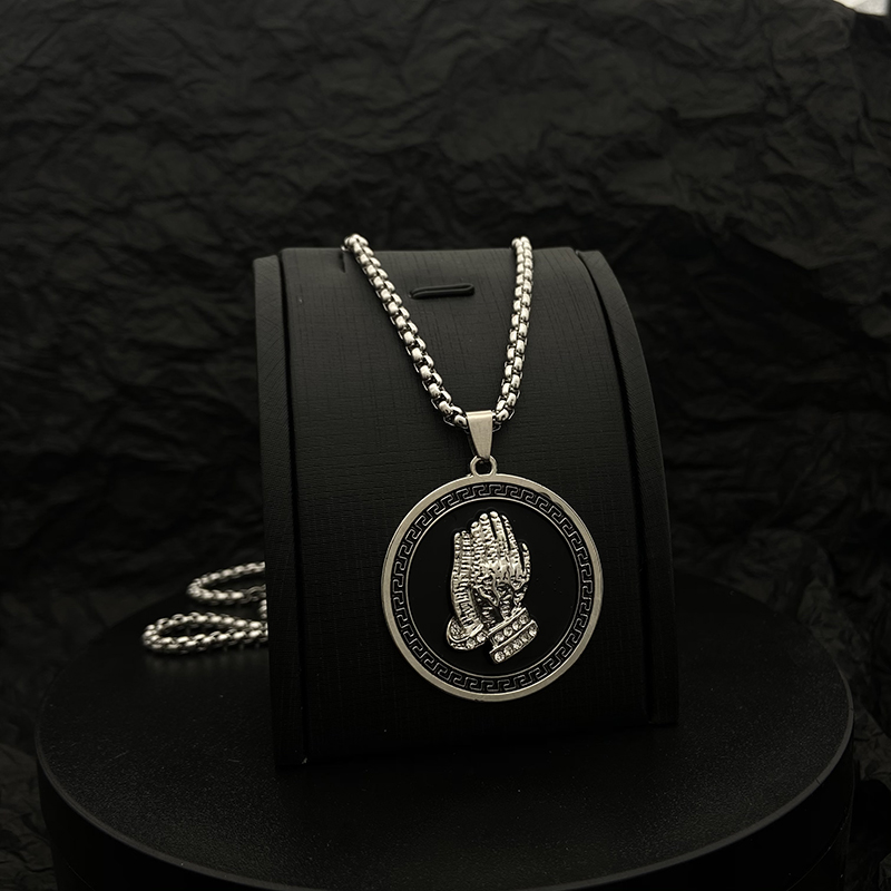 祈祷双佛手项链男女ins简约个性情侣蹦迪嘻哈圆牌吊坠欧美毛衣链