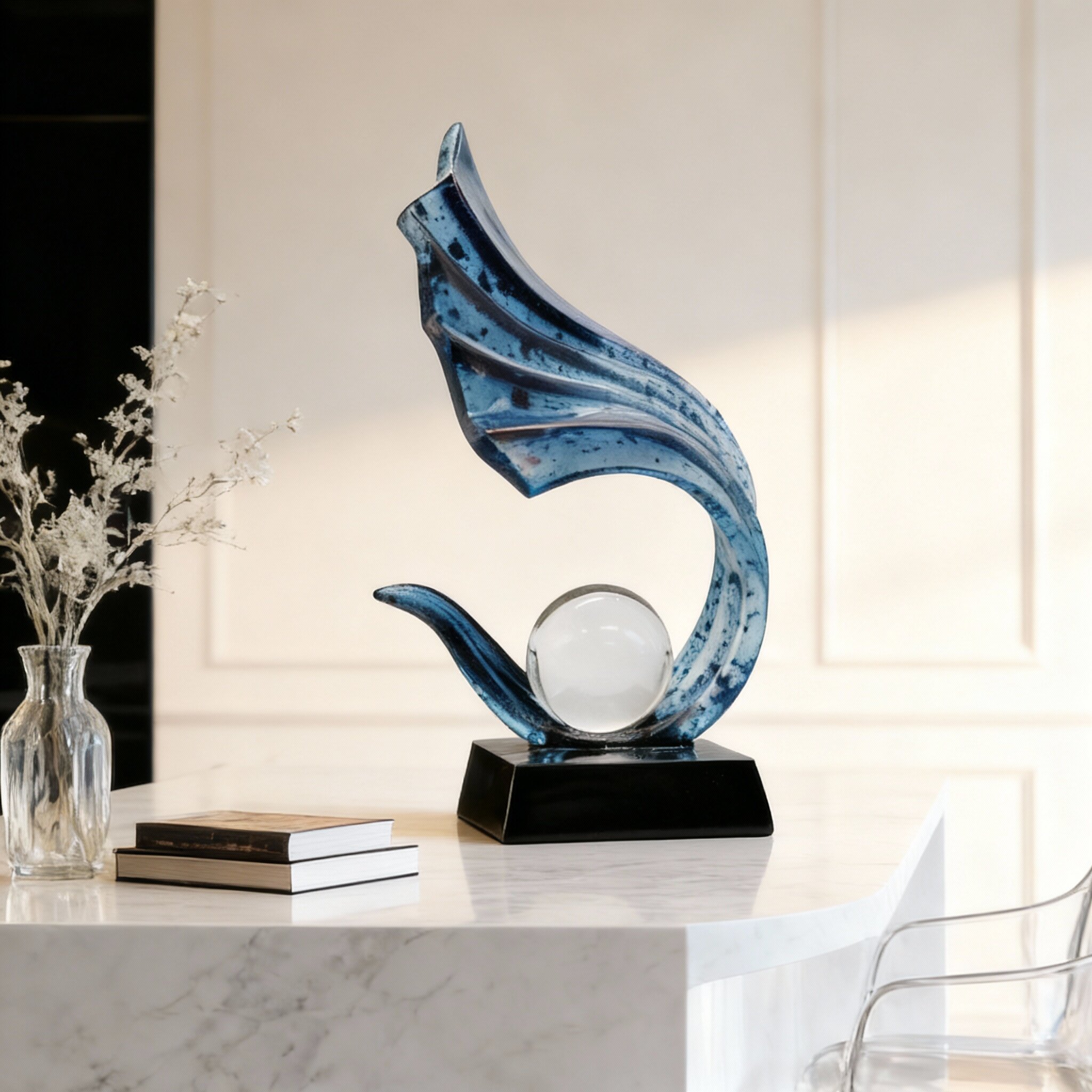 现代轻奢蓝色抽象艺术摆件客厅书房装饰品创意家居饰品