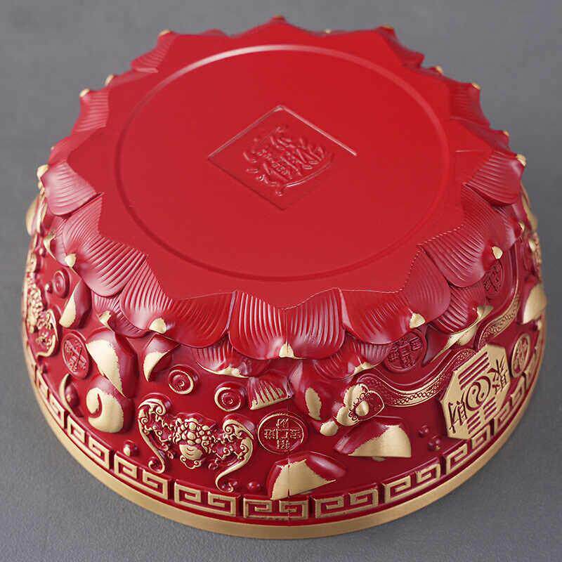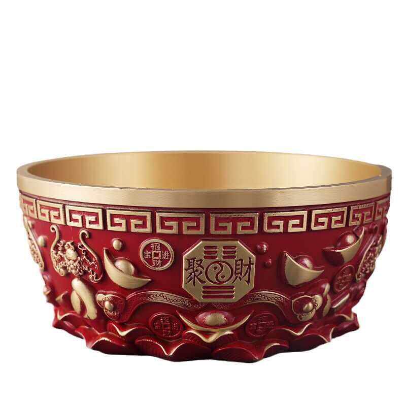 黄铜红色聚宝盆招财聚财铜缸米缸存钱罐水晶摆饰家用客厅装饰收藏