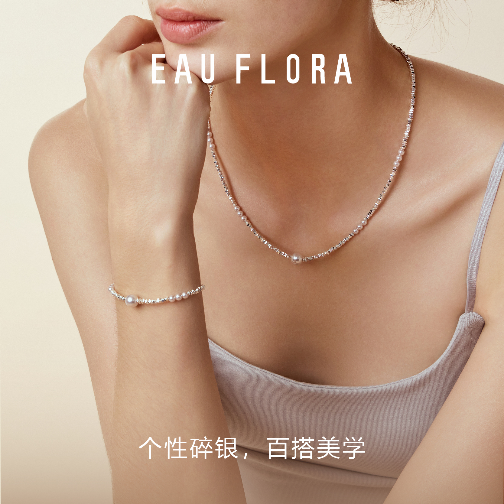 EAU FLORA珍珠碎银项链轻奢精致高级感原创设计首饰女生日礼物