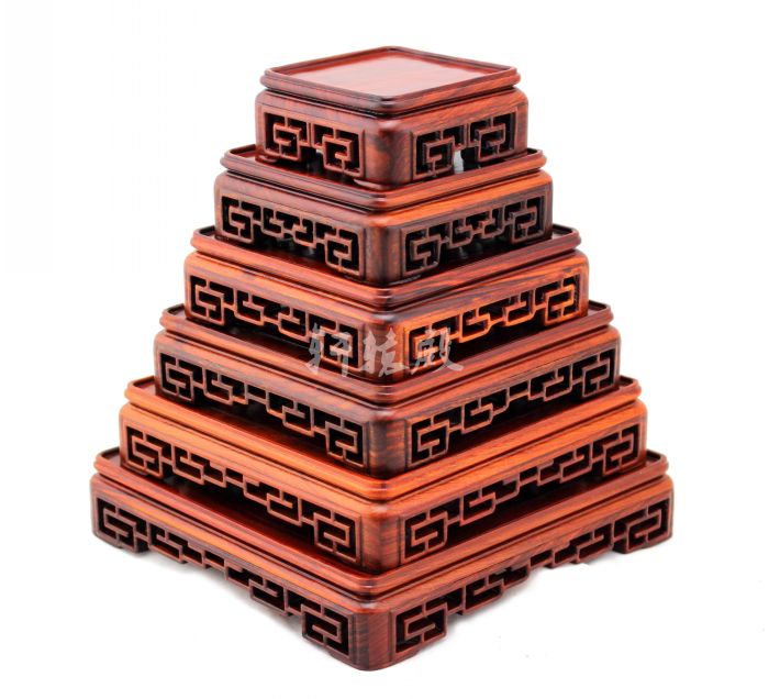 红檀木印章玉玺底座工艺品摆件奇玉石头工艺品实木长正方形底托