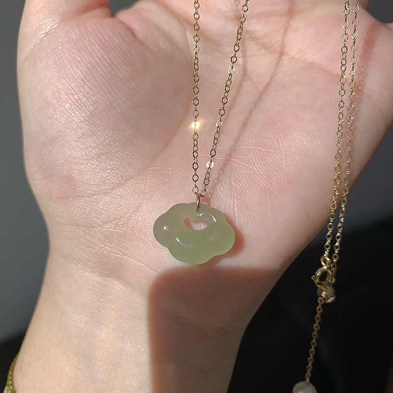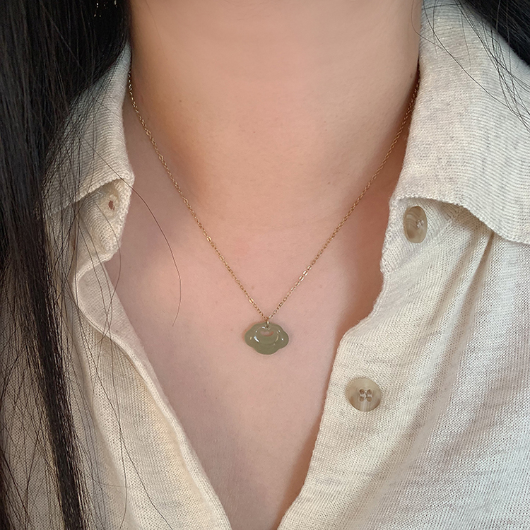 盖娅琳 美产14k包金和田玉如意锁项链女设计感锁骨链简约百搭女