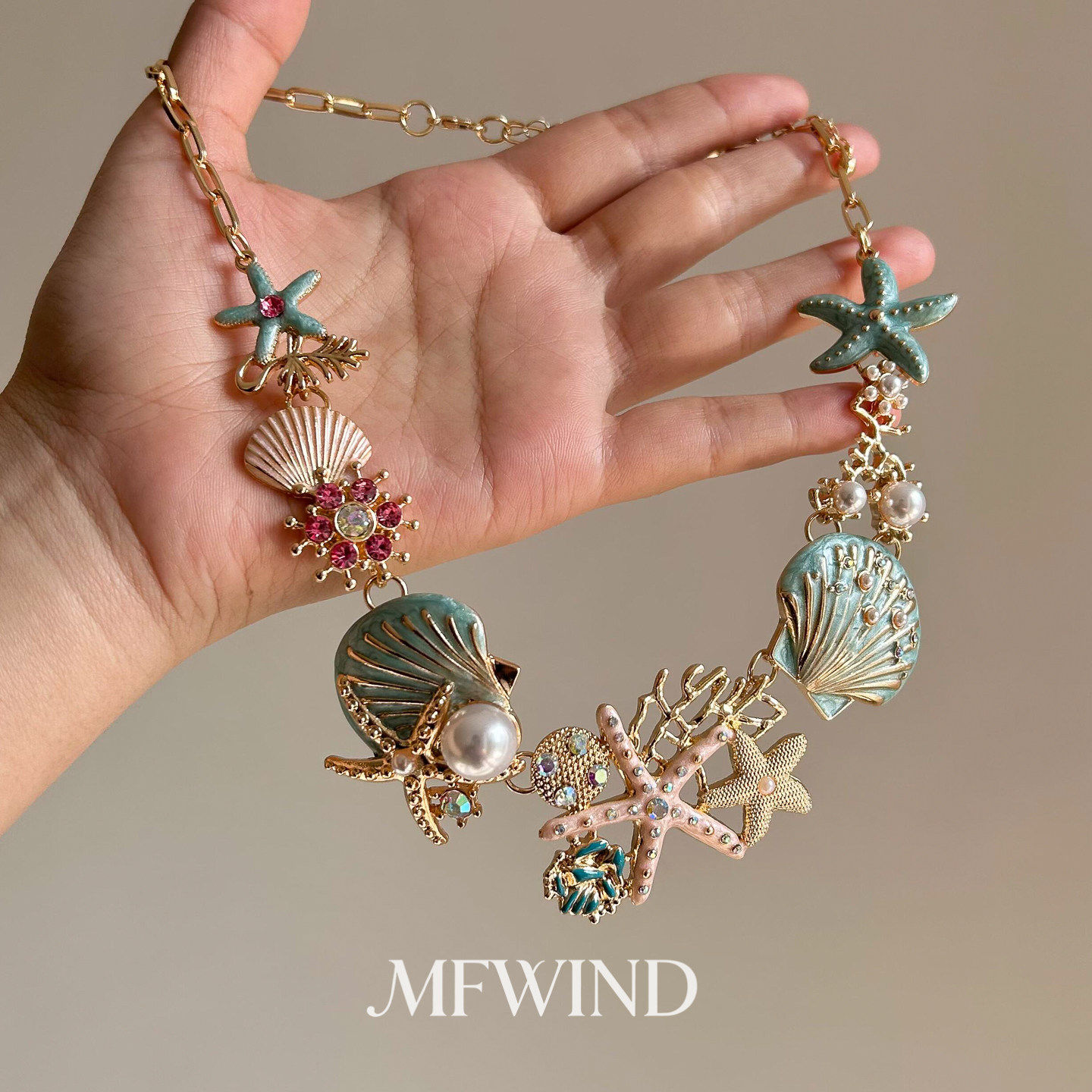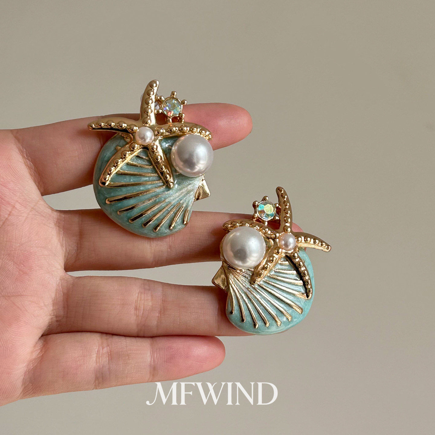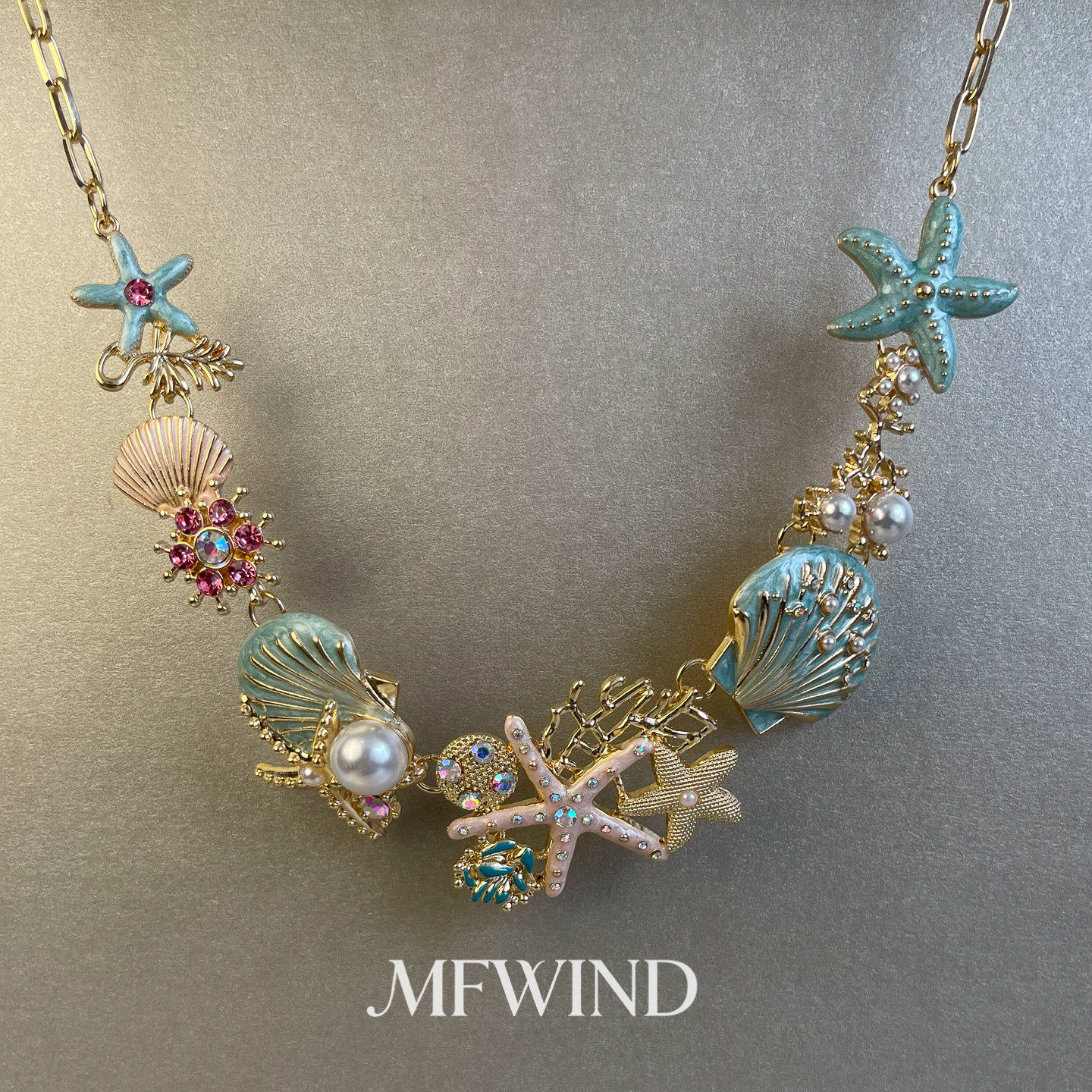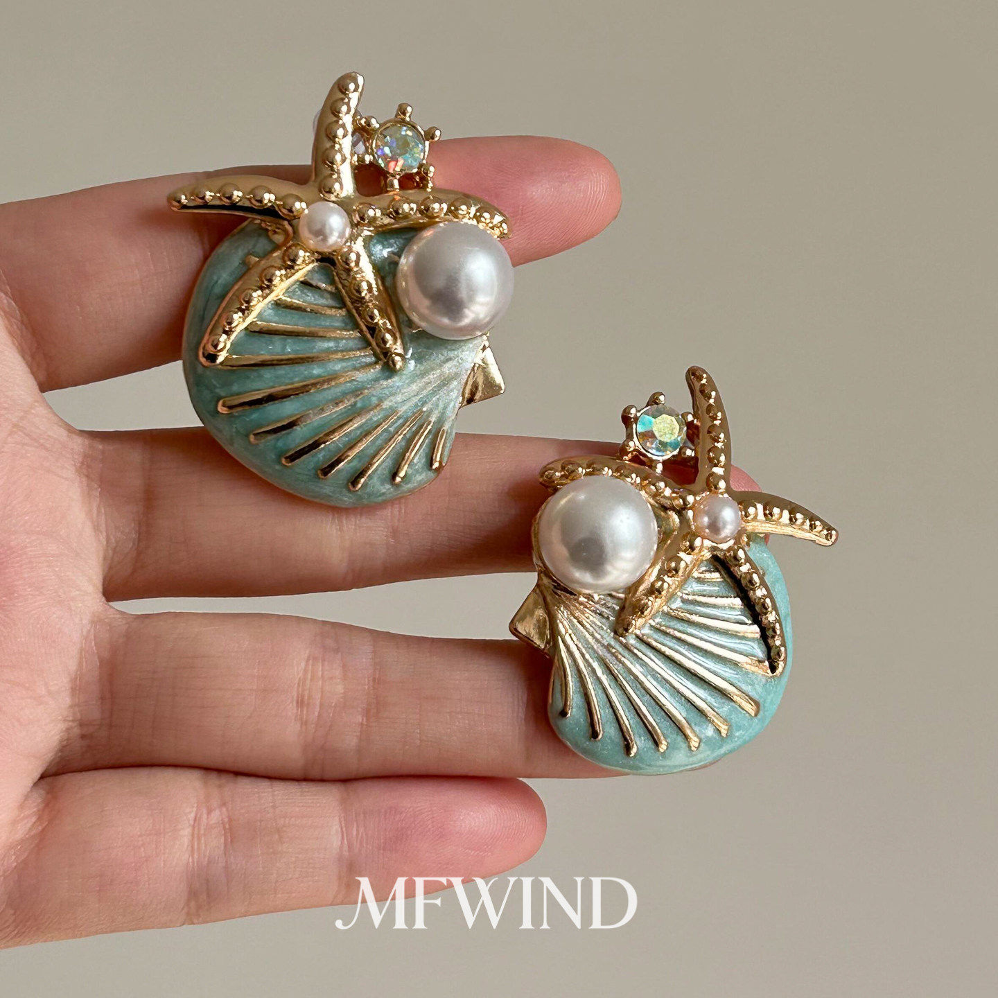 海边度假风蓝色海星贝壳耳环项链女复古百搭时尚气质高级感锁骨链