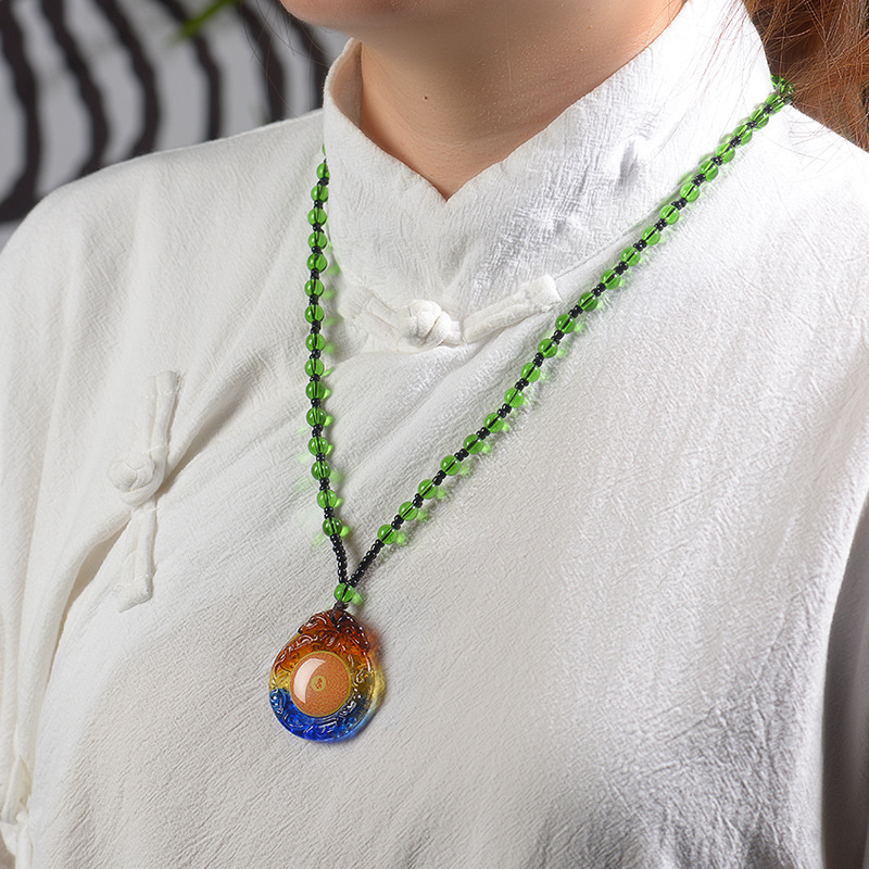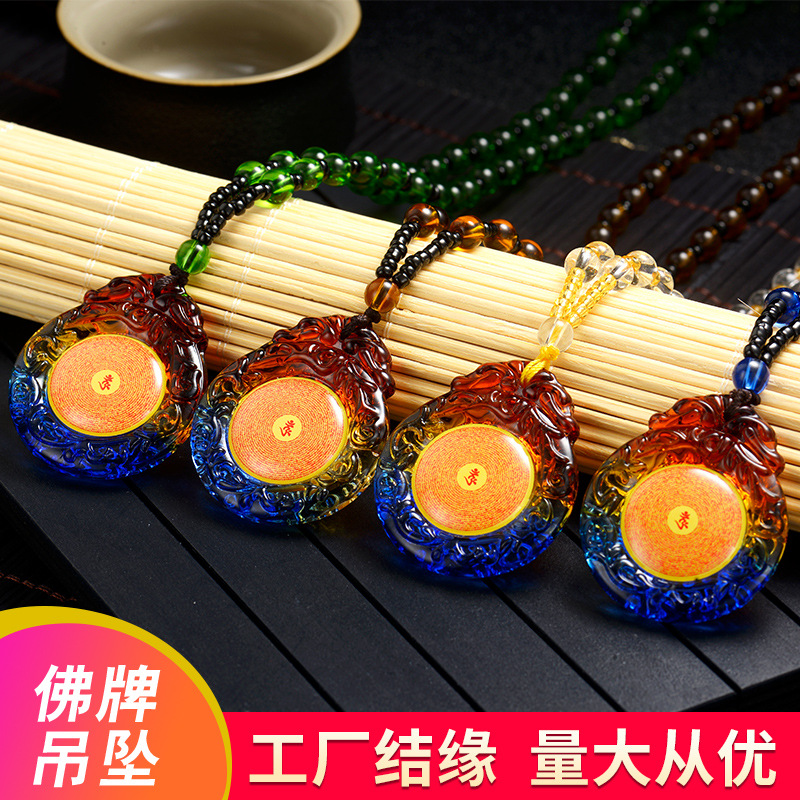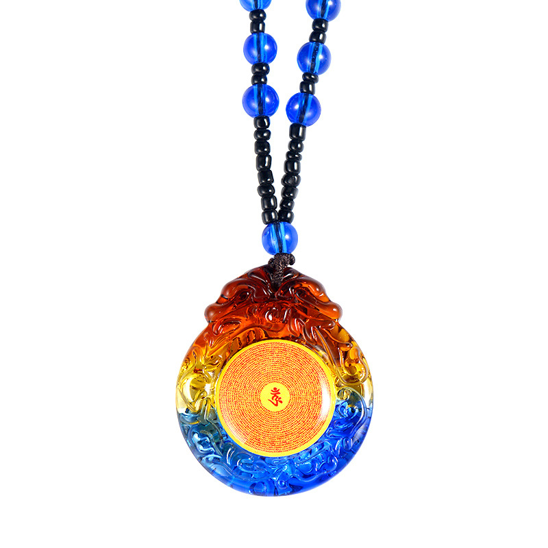 新款如意楞严咒六字真言大随求心经九宫八卦琉璃吊坠挂件咒轮项链